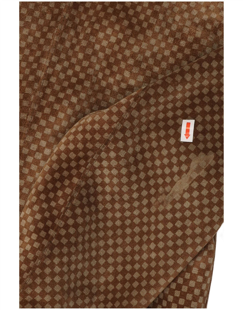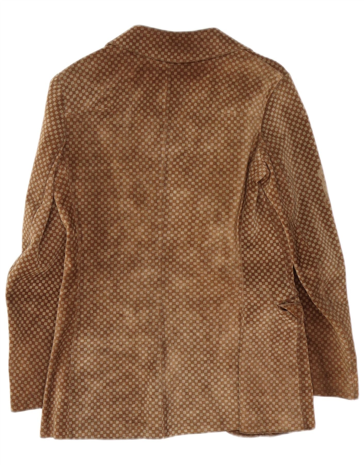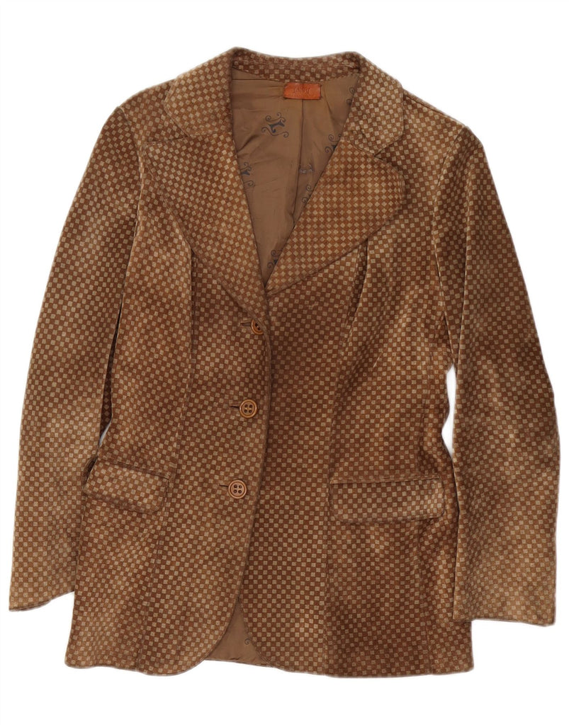 VINTAGE Femme Suède 3 Bouton Blazer Veste UK 10 Petit Marron Géométrique