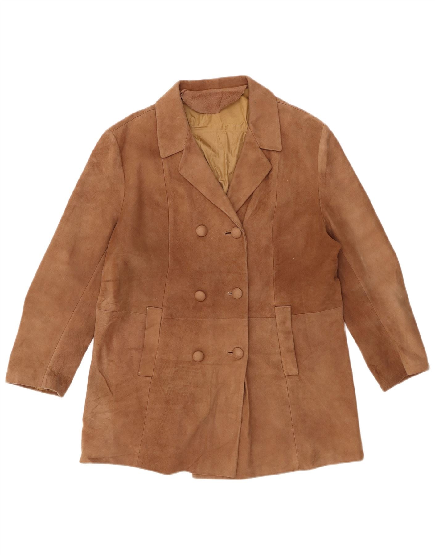 VINTAGE Femme Daim Double Breasted Manteau EU 50 3XL Cuir Marron