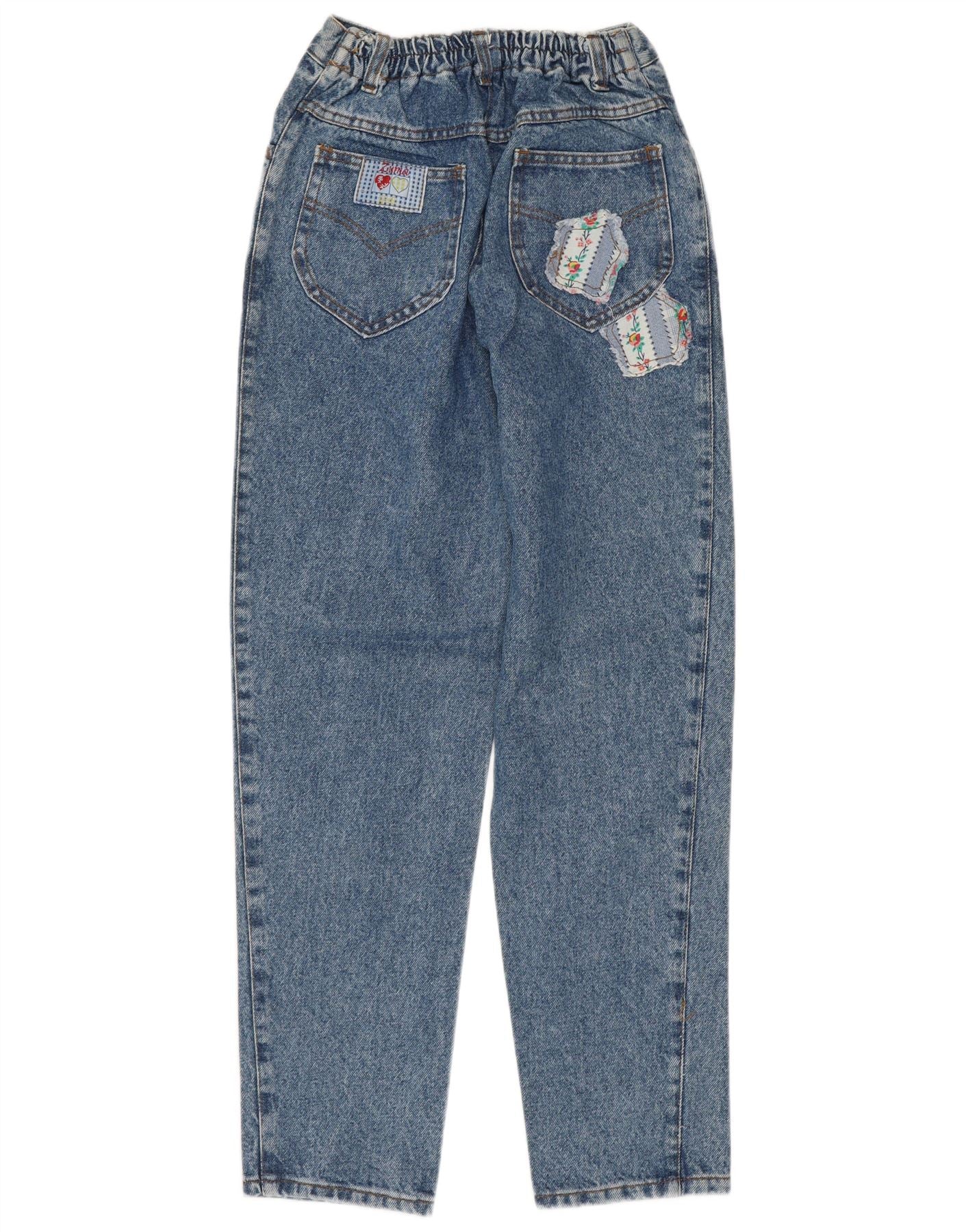 VINTAGE Femme Tapered Jeans EU 40 Moyen W28 L28 Bleu Floral Coton