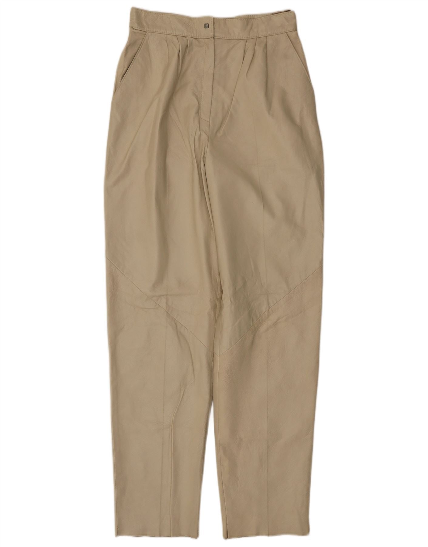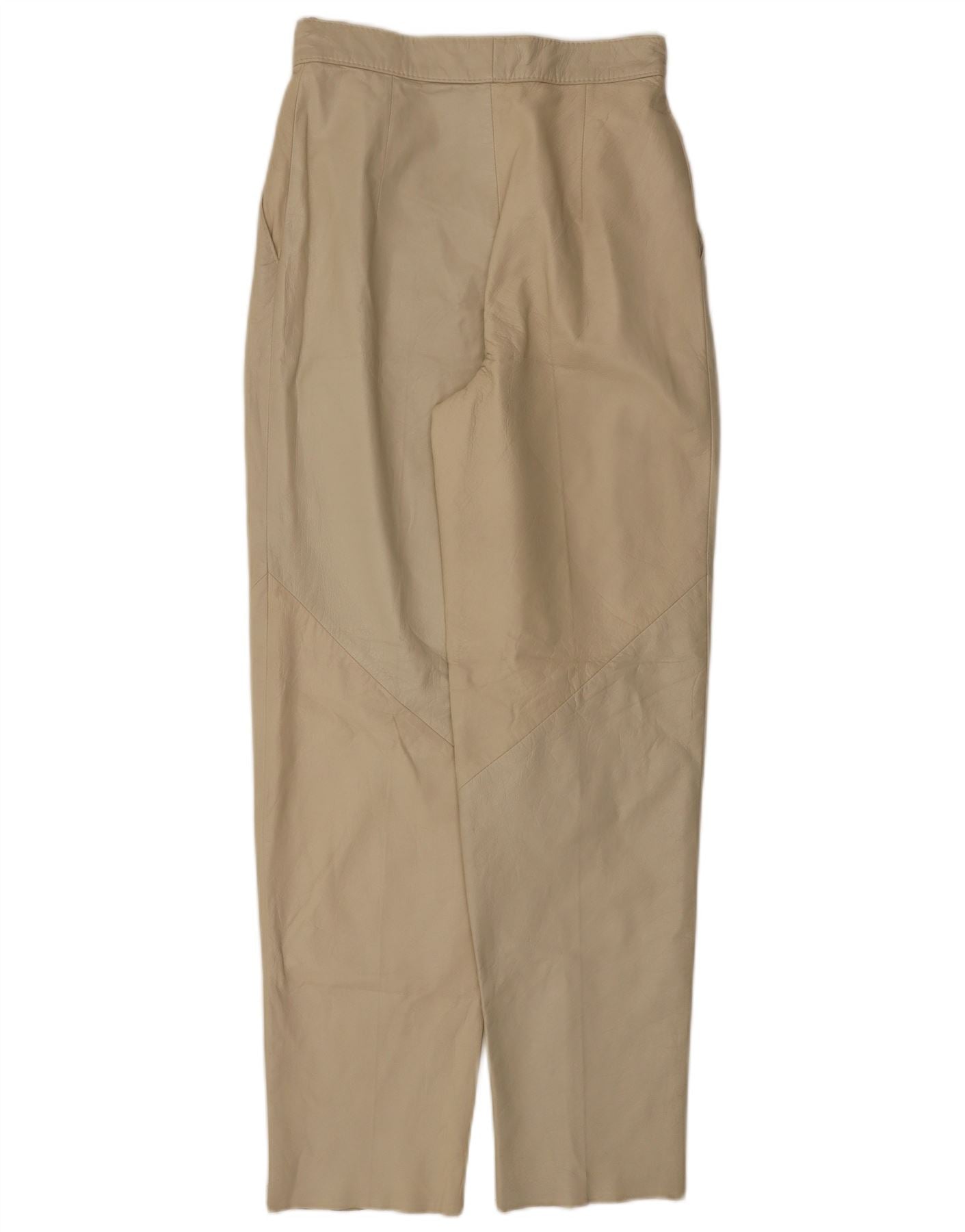 VINTAGE Pantalon Fuselé En Cuir Femme W26 L30 Beige