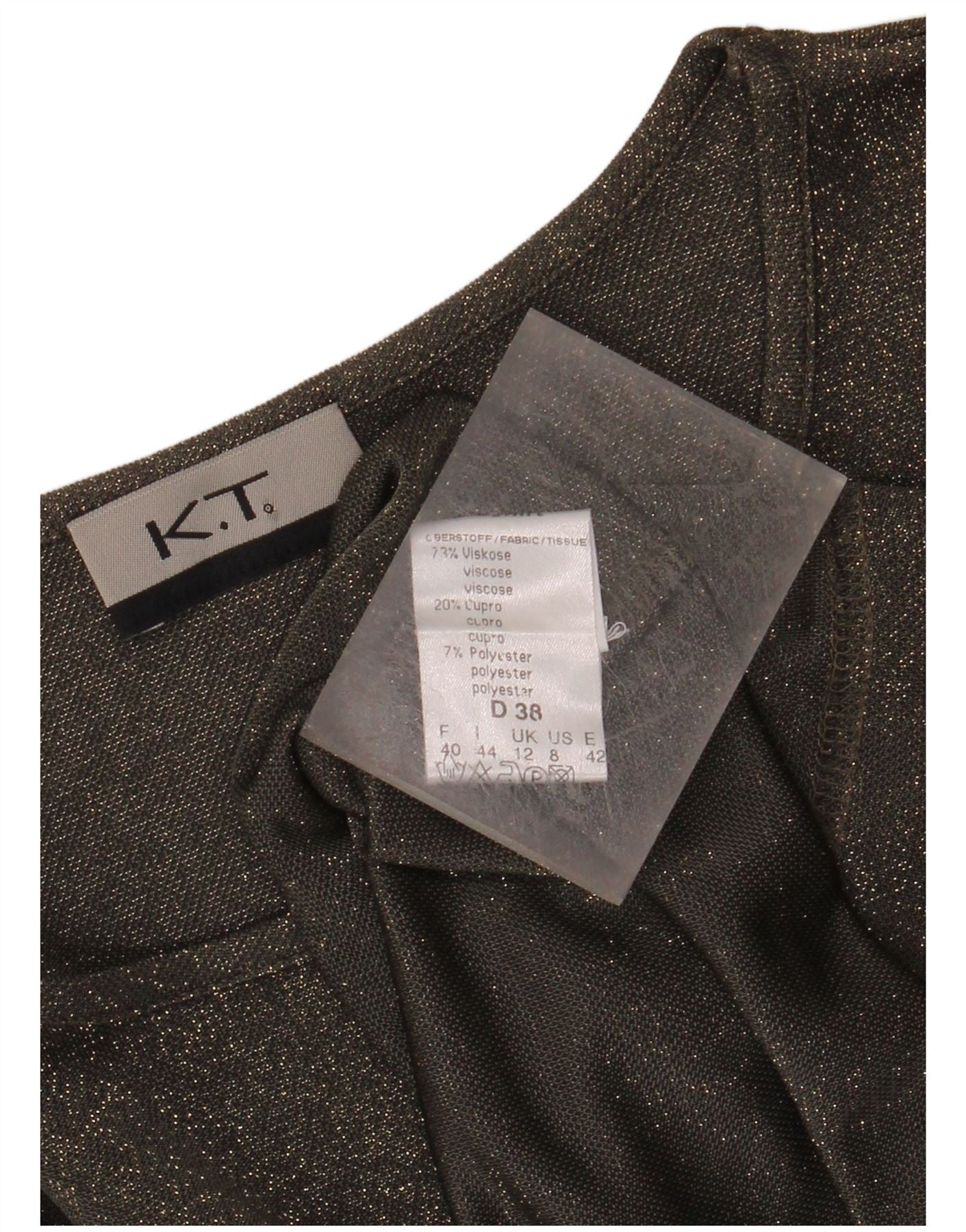 VINTAGE Top Femme Manches Longues UK 12 Viscose Mouchetée Vert Moyen