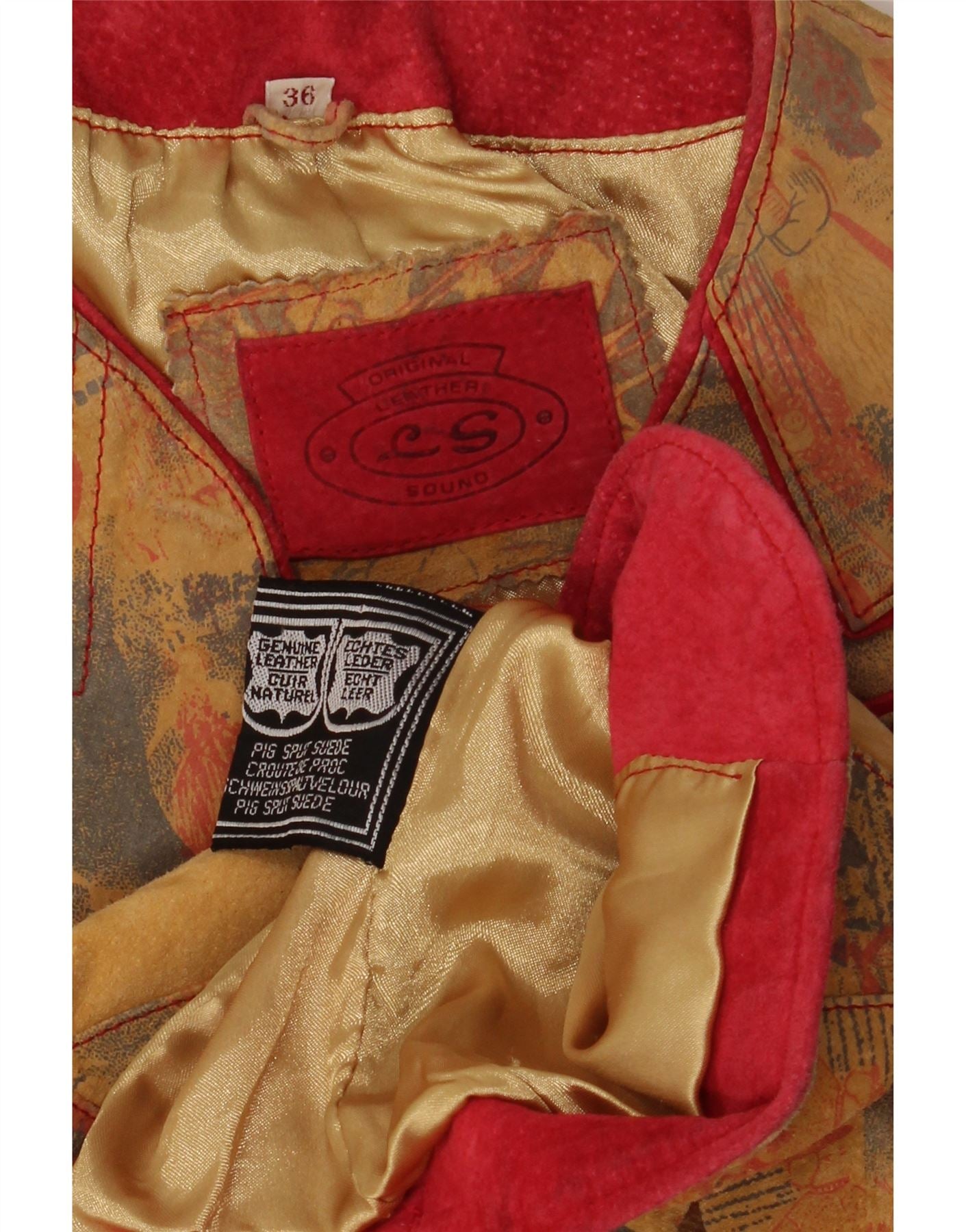 Vintage Femme Trachten 4 Bouton Blazer Veste EU 36 Petit Cuir Beige