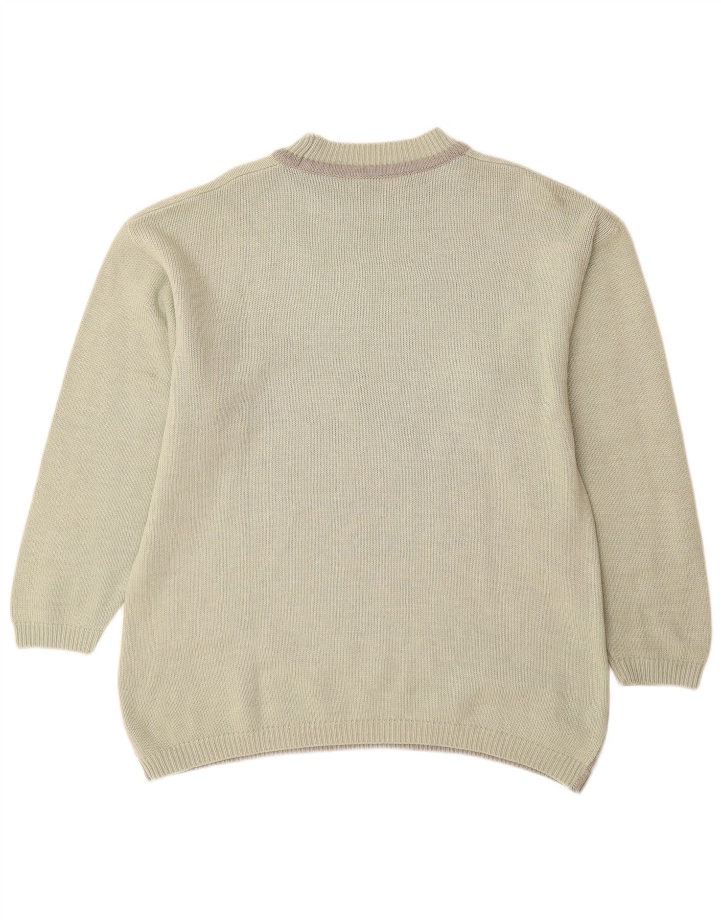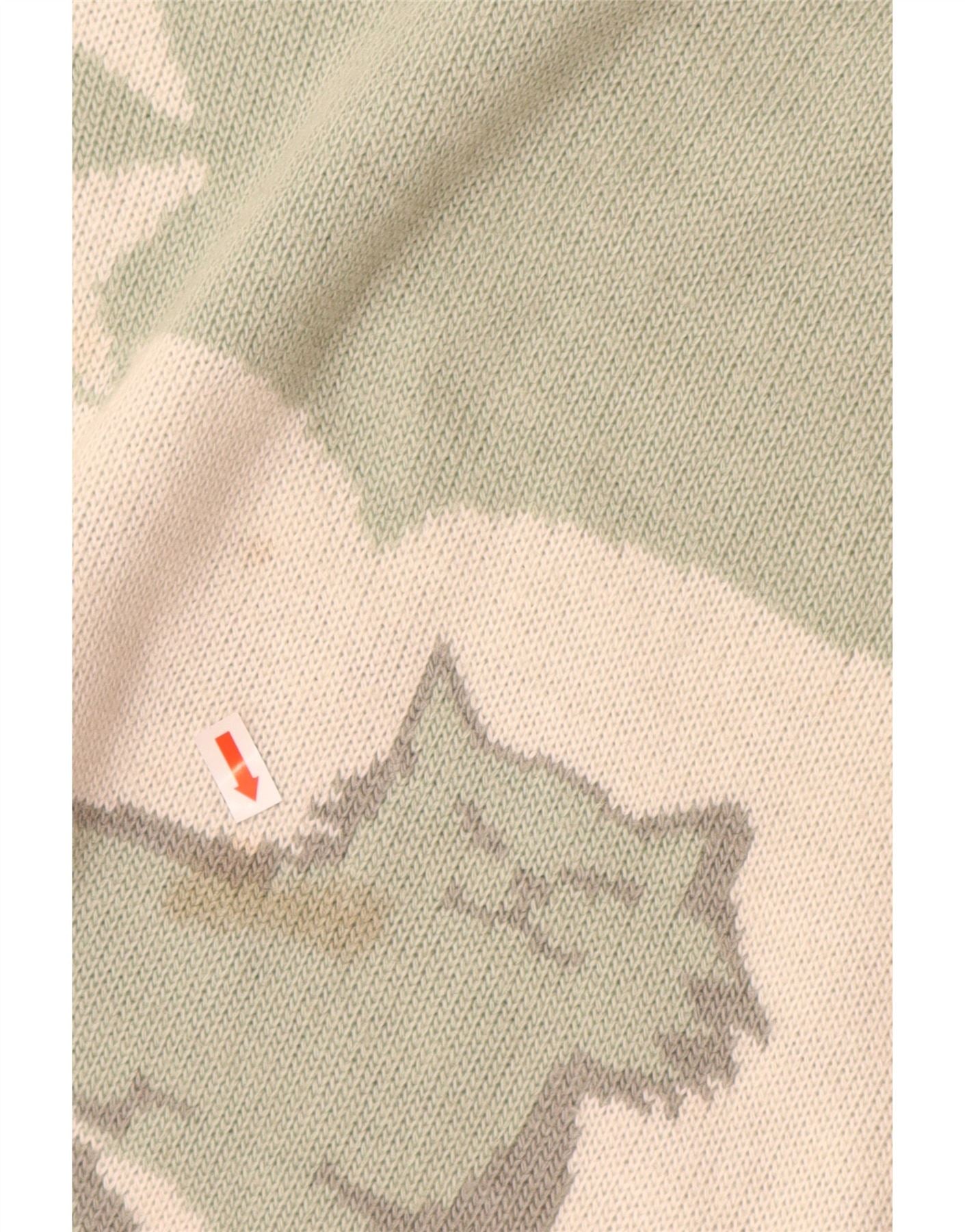 VINTAGE Pull col roulé femme UK 16 Grand imprimé animal vert