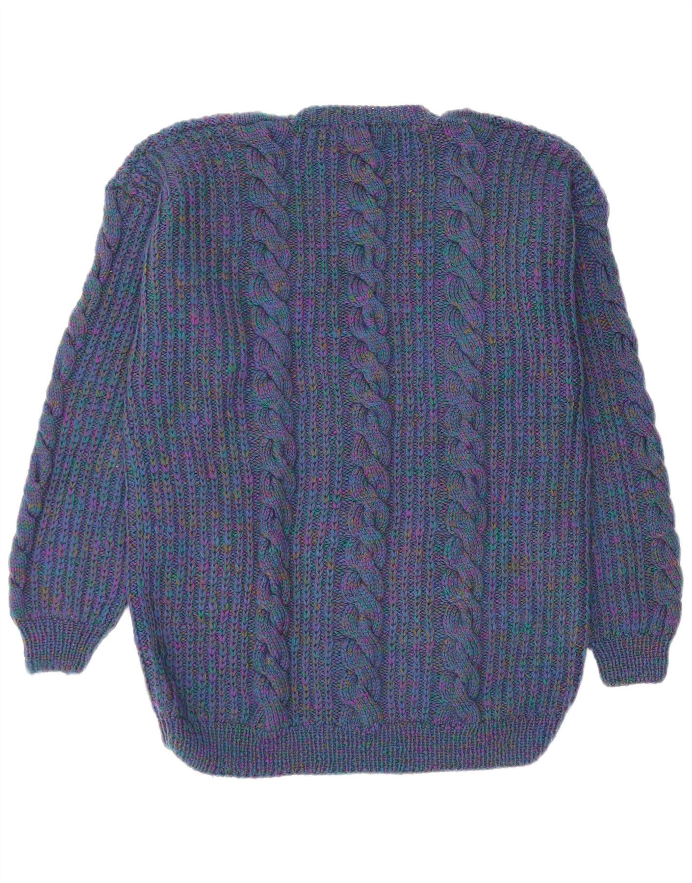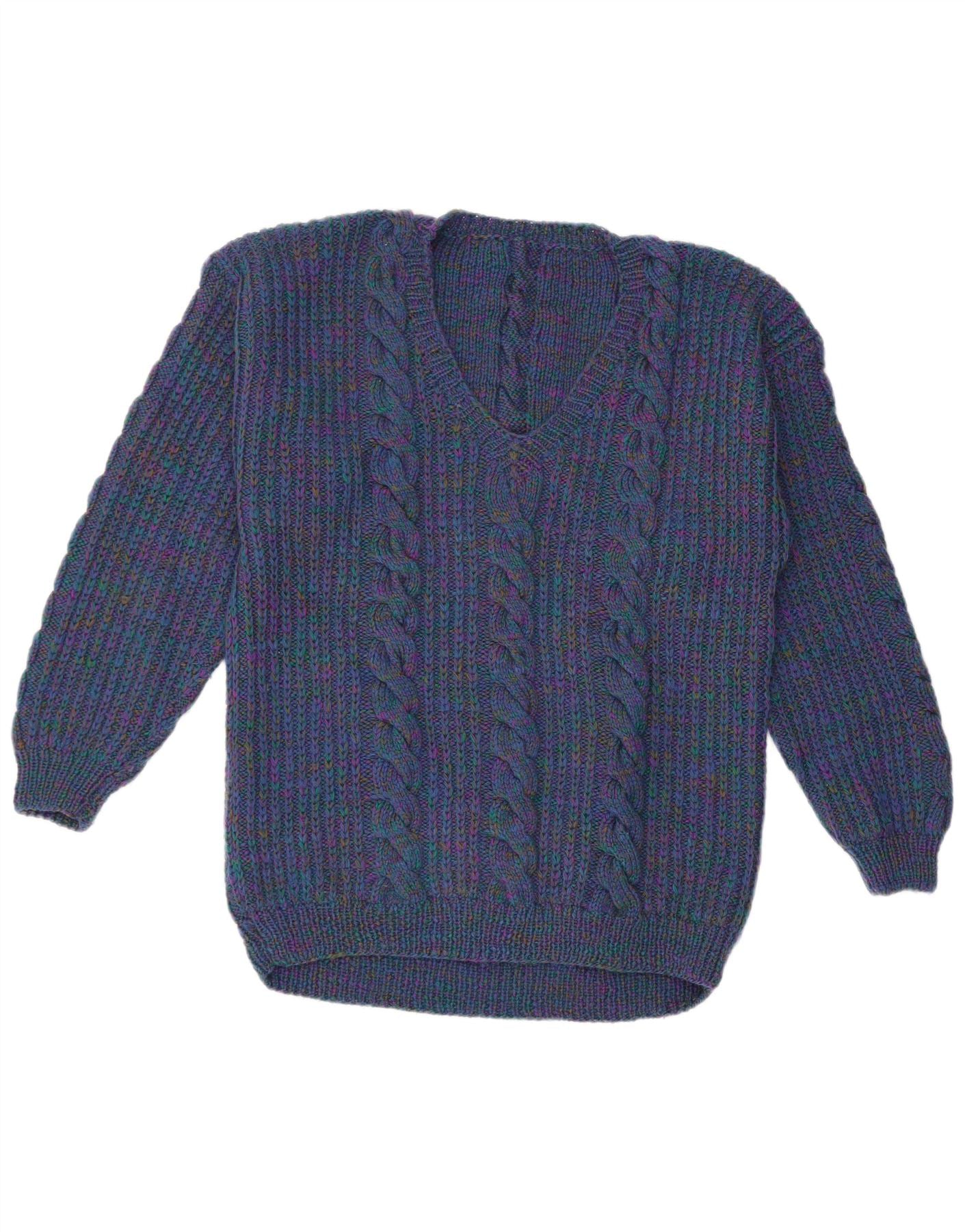 VINTAGE Femme Col V Pull Pull UK 14 Grand Bleu Marine Moucheté