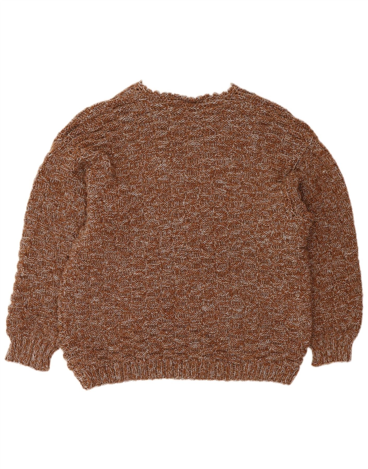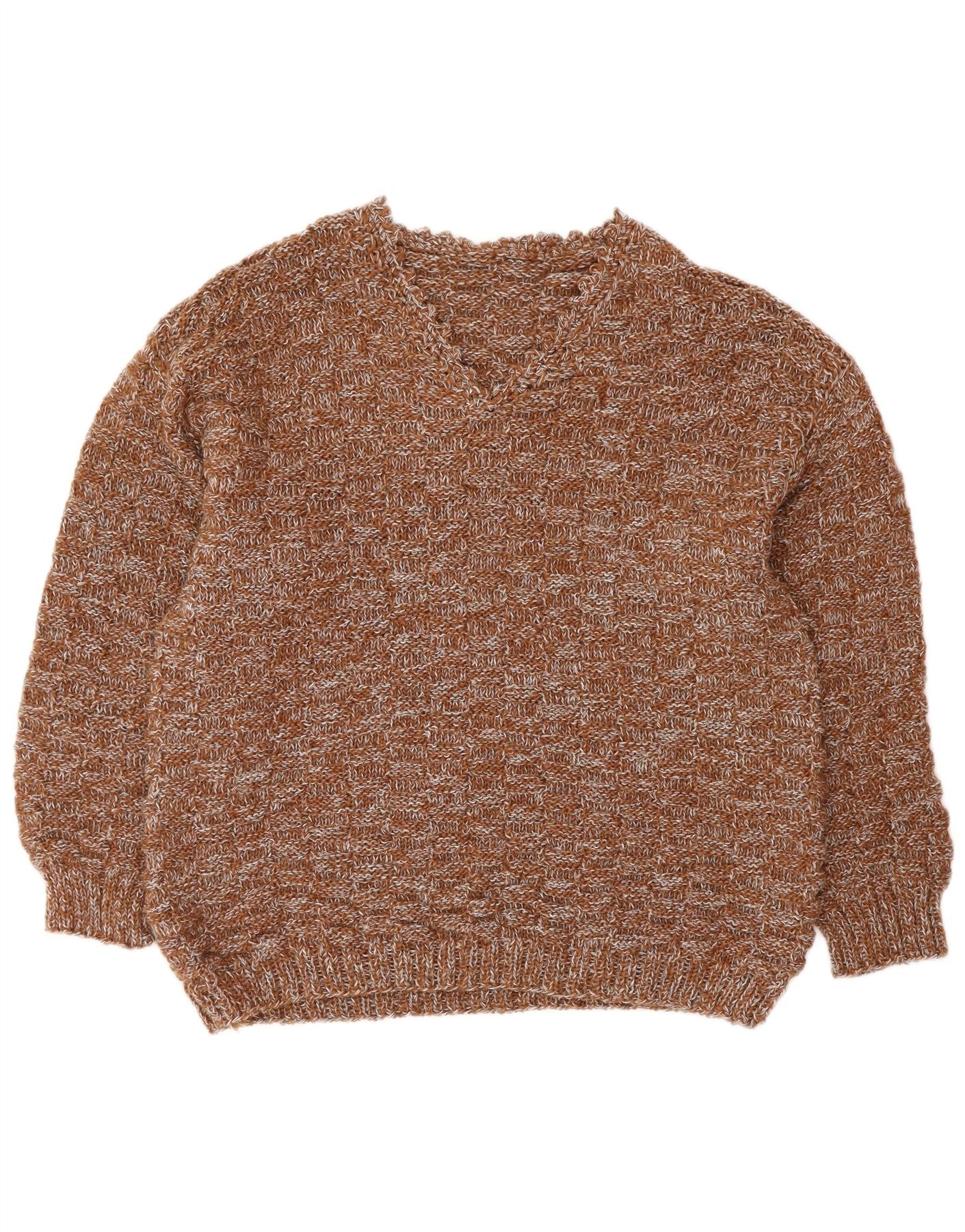 VINTAGE Femme Col V Pull Pull UK 16 Grand Marron Moucheté