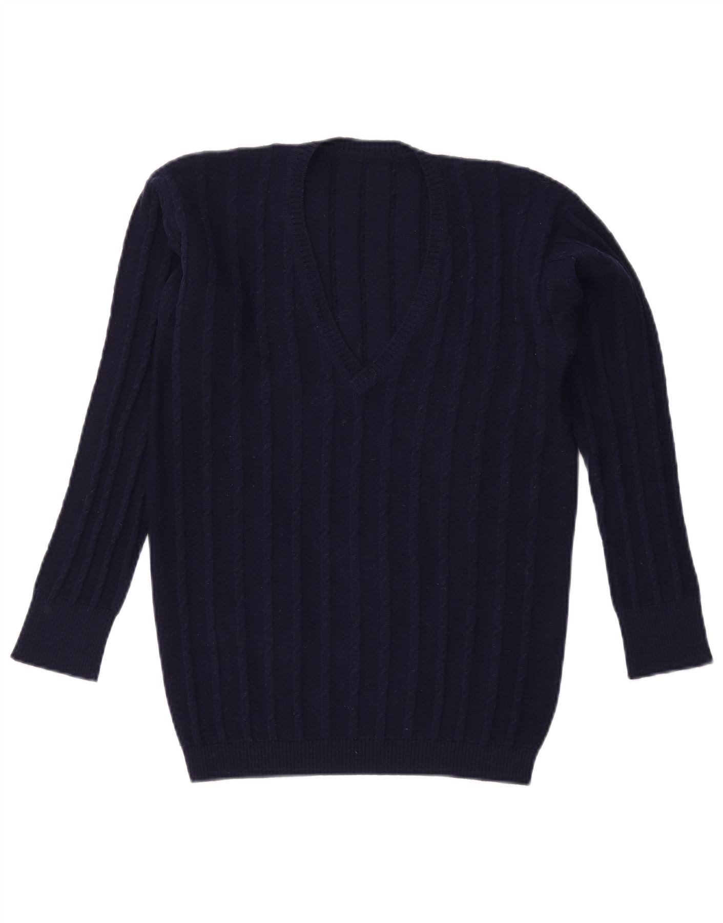 VINTAGE Pull col V femme UK 16 Grand Bleu Marine