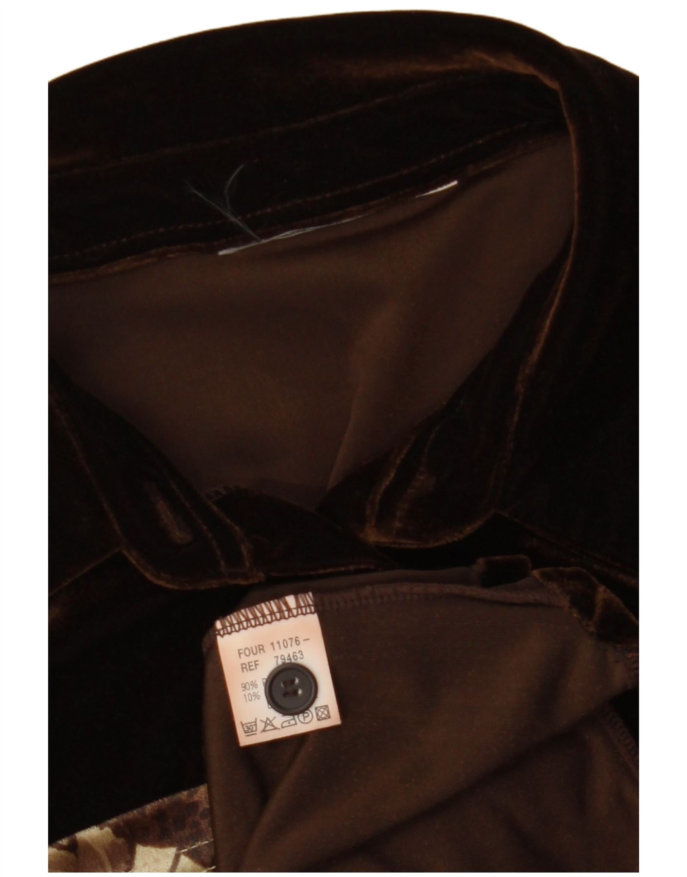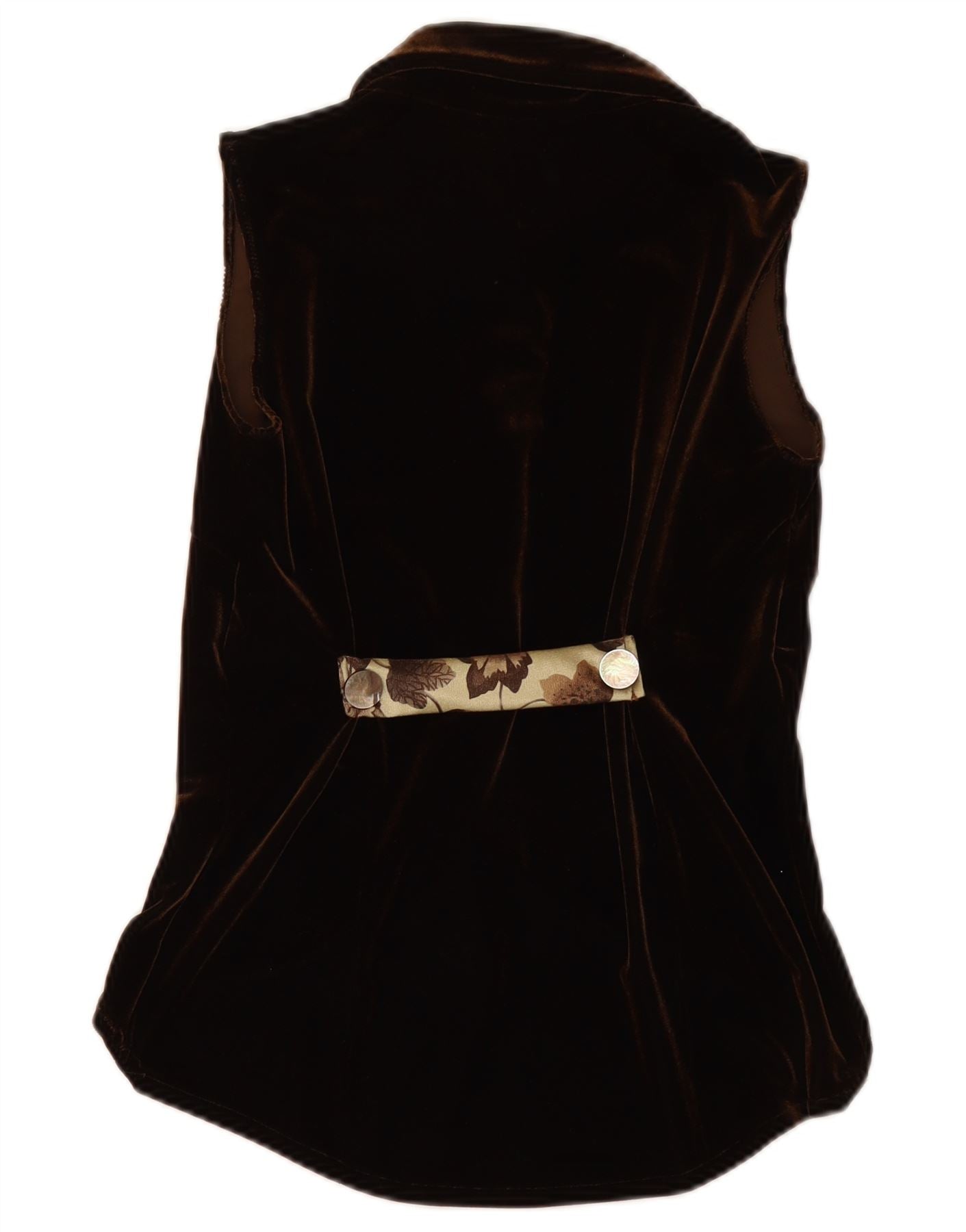 VINTAGE Femme Velours Chemise sans manches Blouse UK 12 Medium Brown Floral