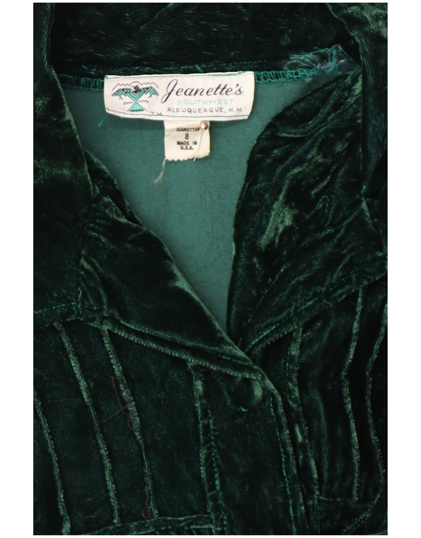 VINTAGE Chemise pull en velours femme US 8 Vert moyen