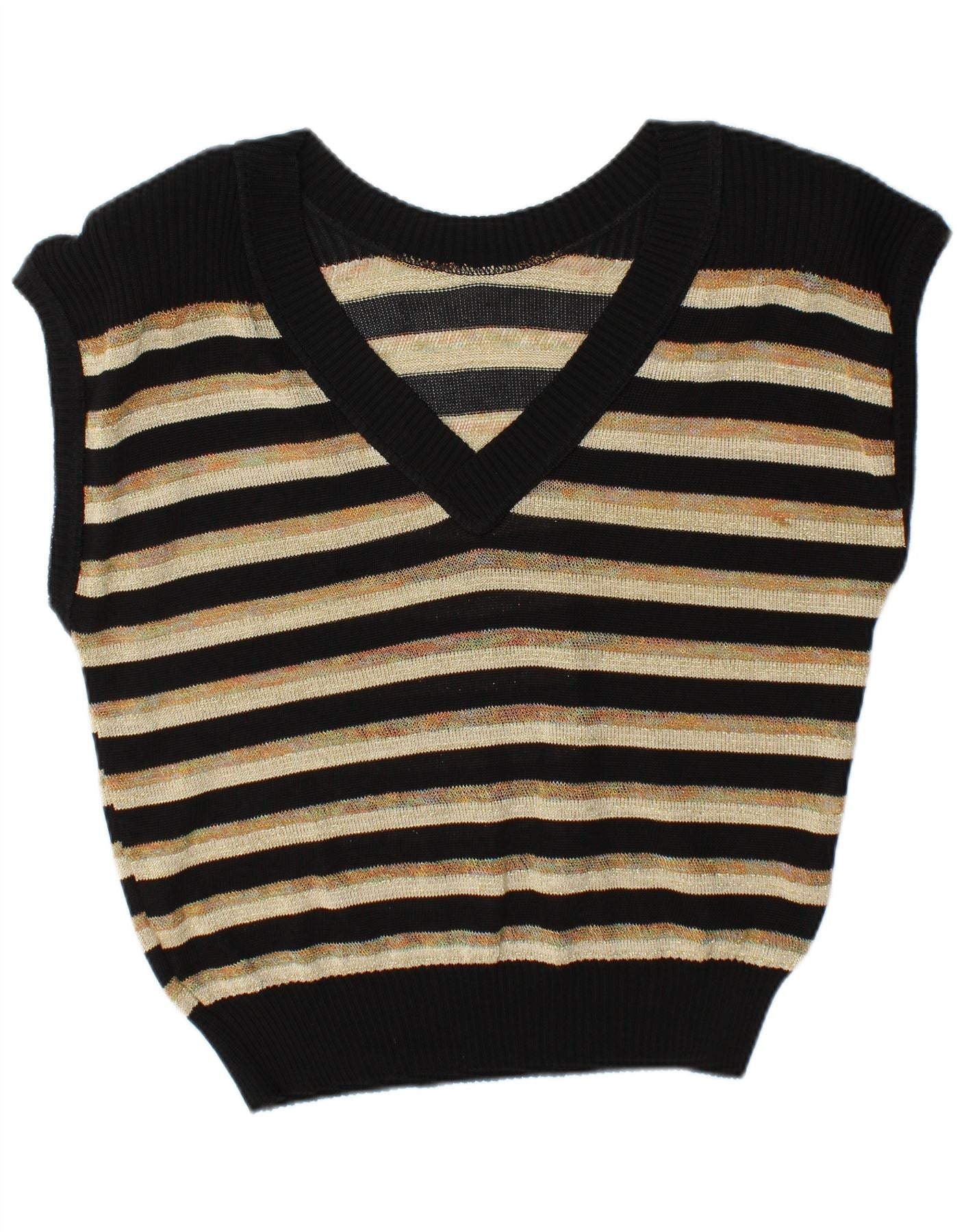 VINTAGE Femme Gilet Débardeur UK 16 Grand Coton Rayé Noir