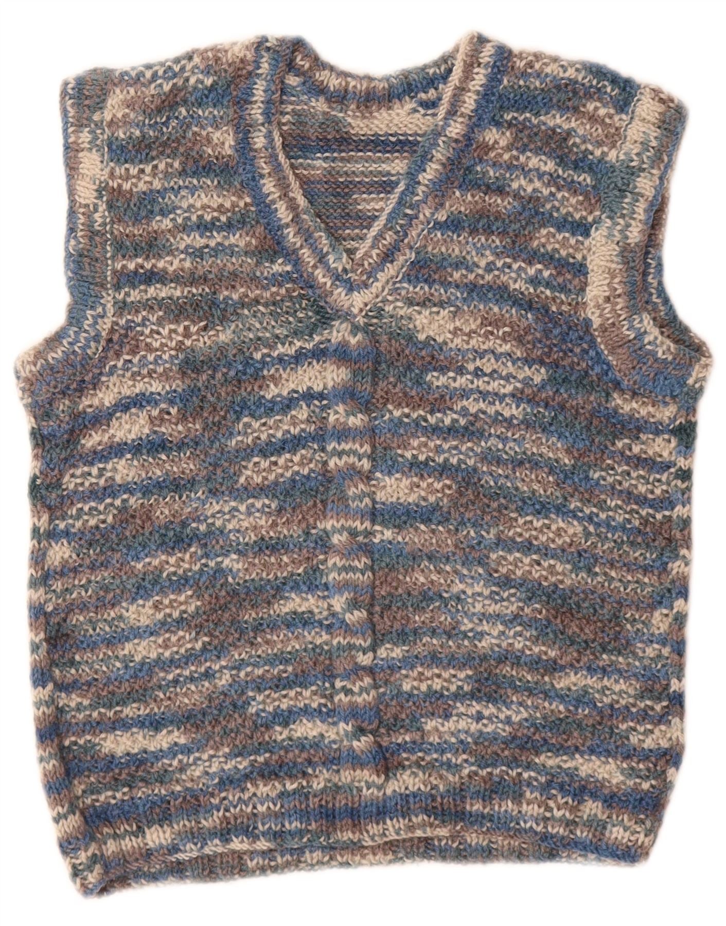 VINTAGE Femme Gilet Débardeur UK 8 Petit Bleu Moucheté