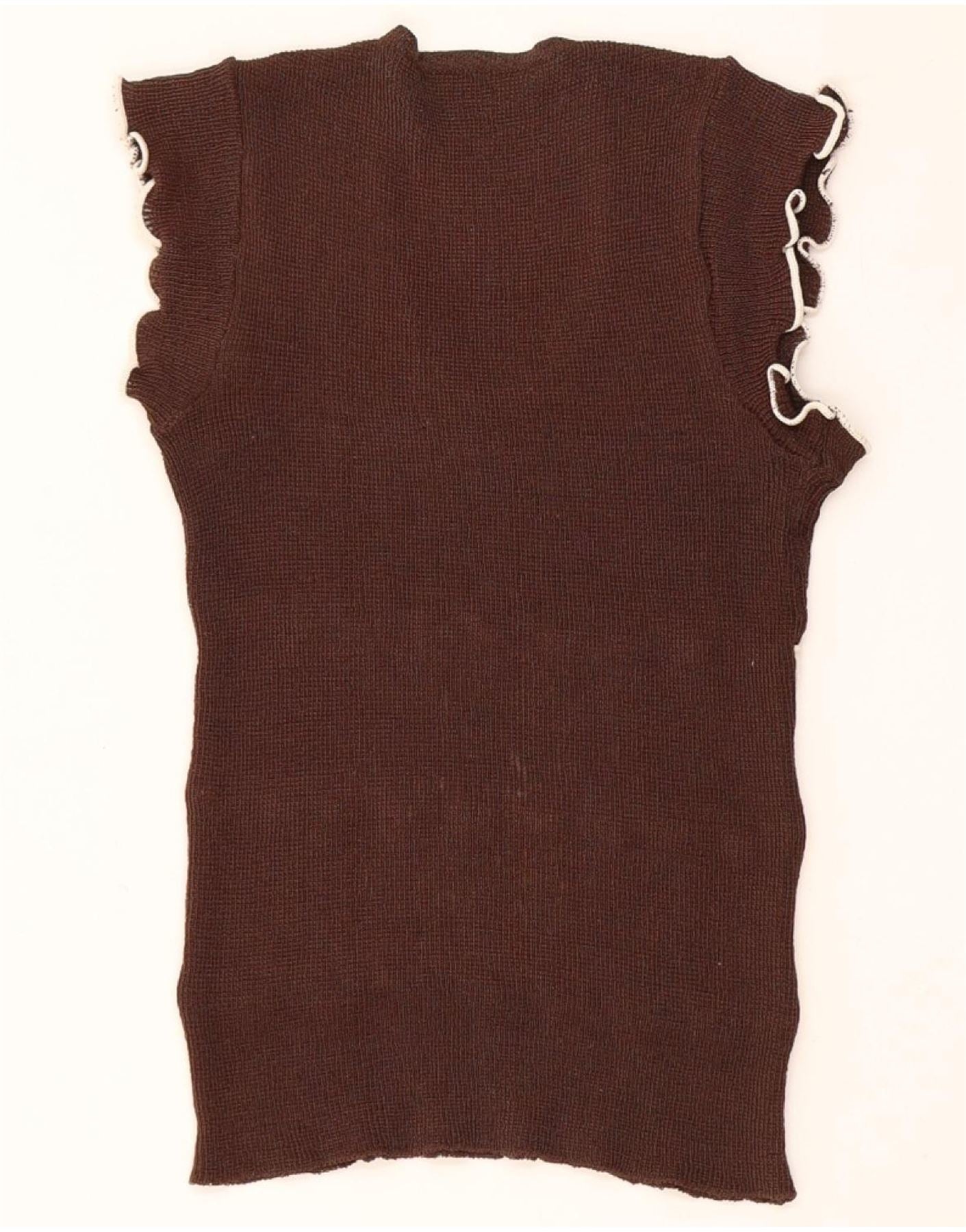 vintage Womens Vest Tank Top UK 8 Petit Colorblock Brun