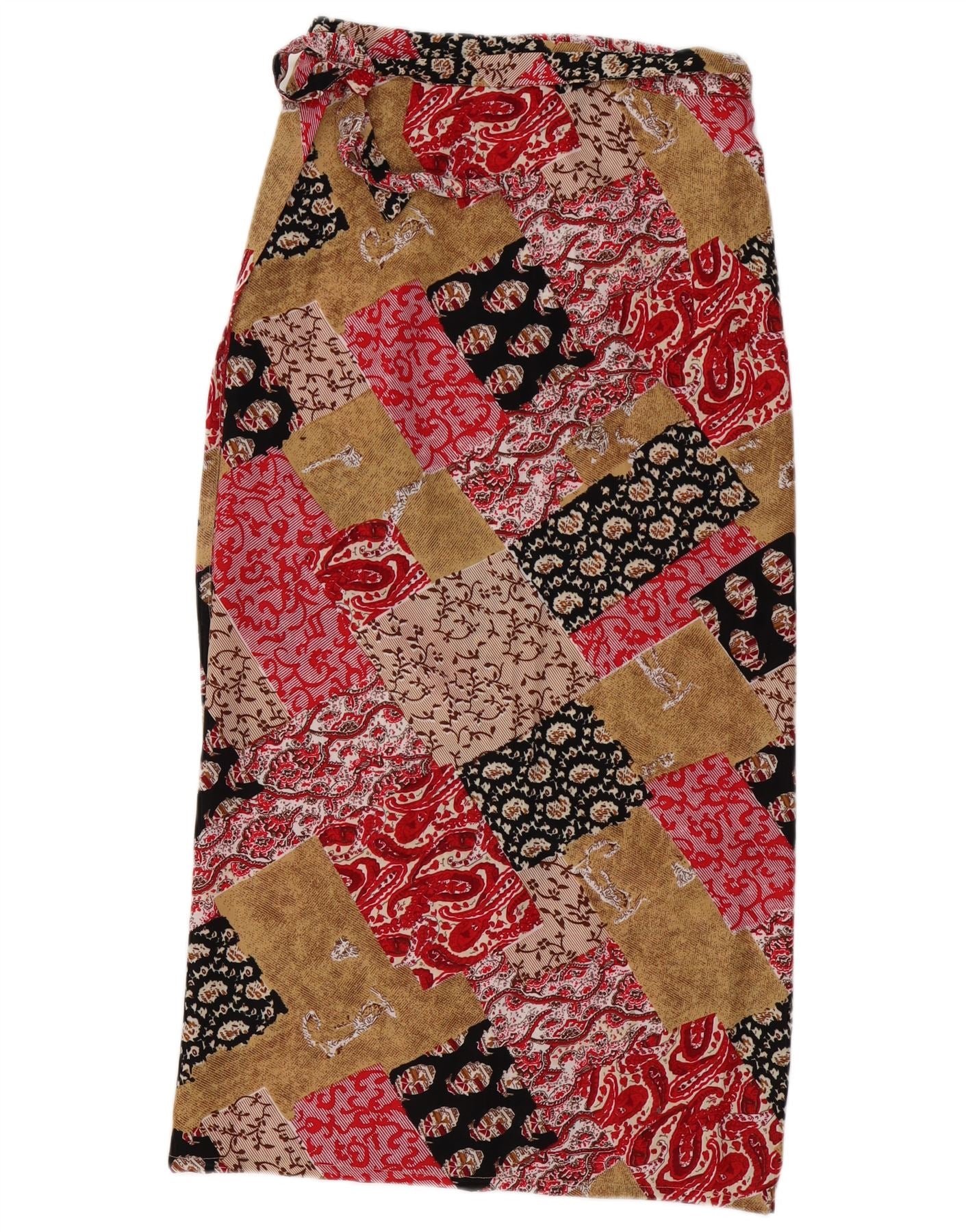VINTAGE Jupe Maxi Portefeuille Femme W30 Moyen Multicolore Patchwork Viscose