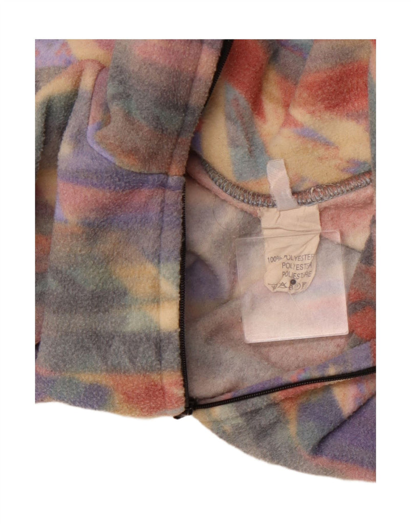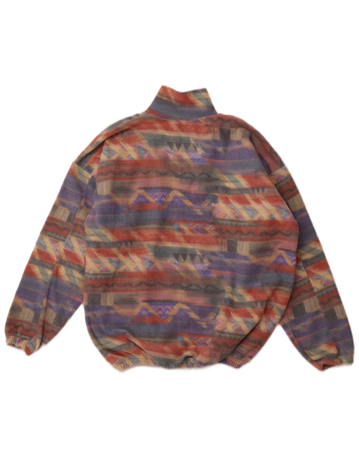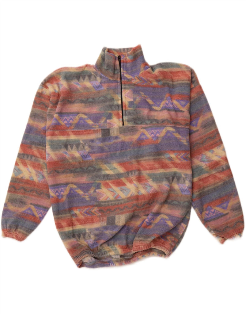VINTAGE Femme Zip Neck Fleece Jumper UK 16 Grand Multicolore Géométrique