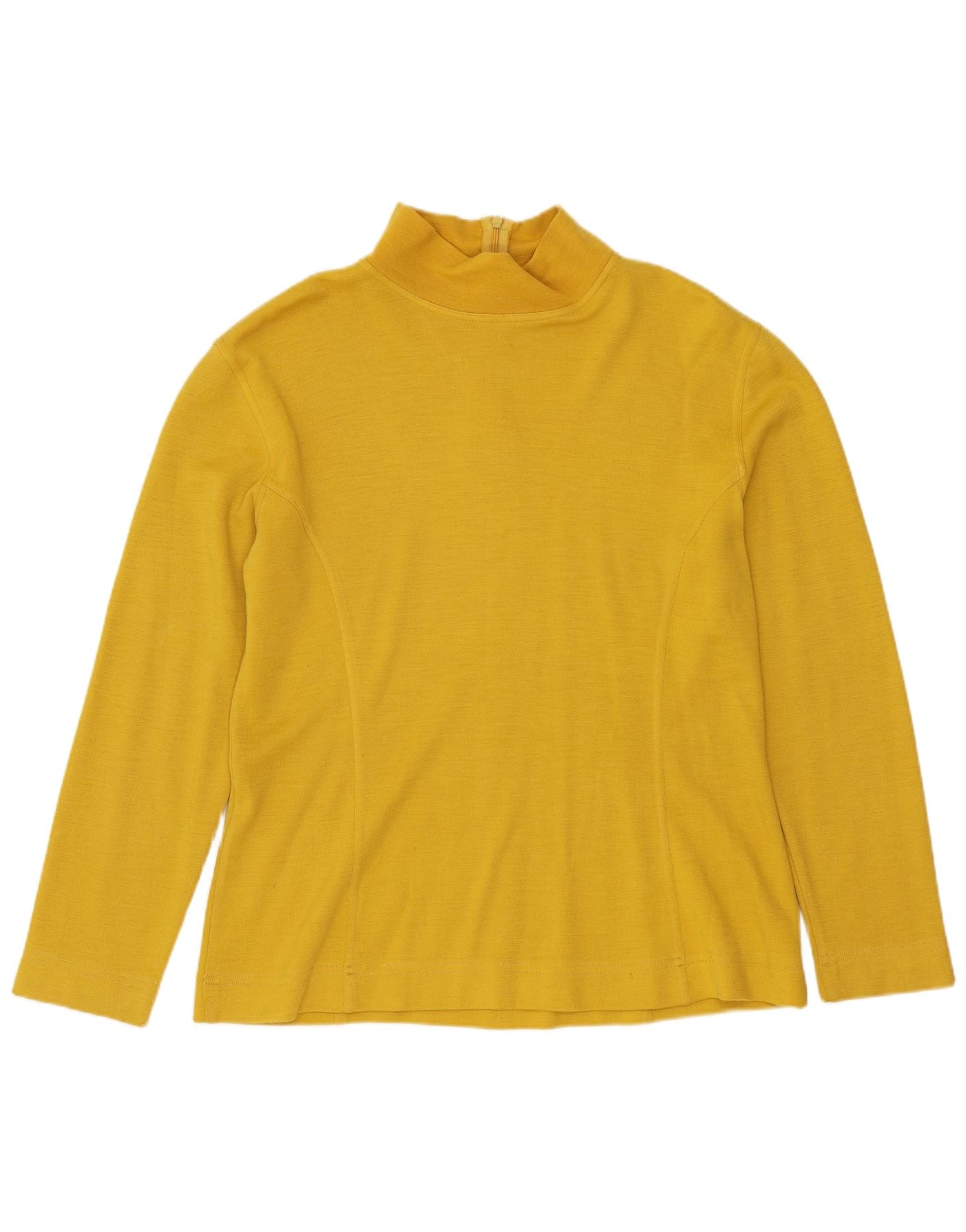 VINTAGE Haut à col zippé et manches longues pour femmes IT 46 Large Jaune