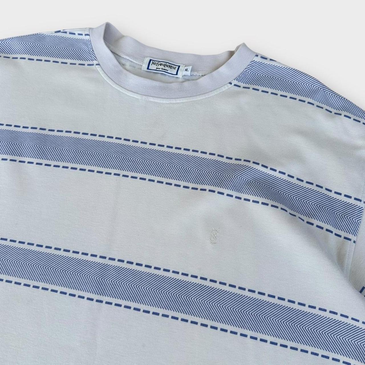 T-shirt à motifs rayé bleu et blanc Yves Saint Laurent vintage des années 90 avec logo brodé sur la poitrine