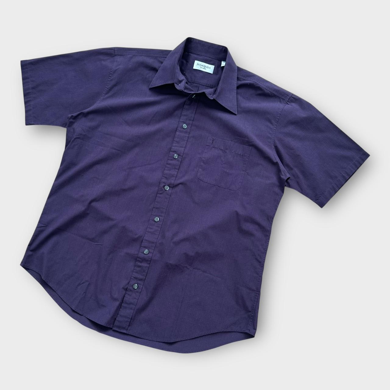 Chemise à manches courtes boutonnée Yves Saint Laurent vintage du début des années 2000 de couleur marron/violet avec logo brodé sur la poitrine