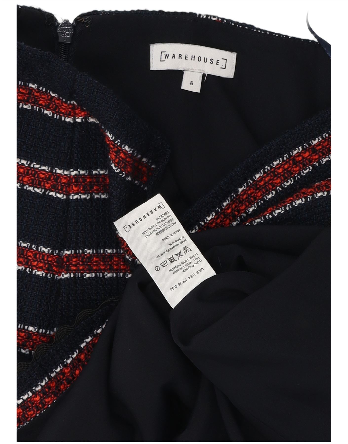 WAREHOUSE Mini jupe femme UK 8 Small W26 bleu marine rayé polyester
