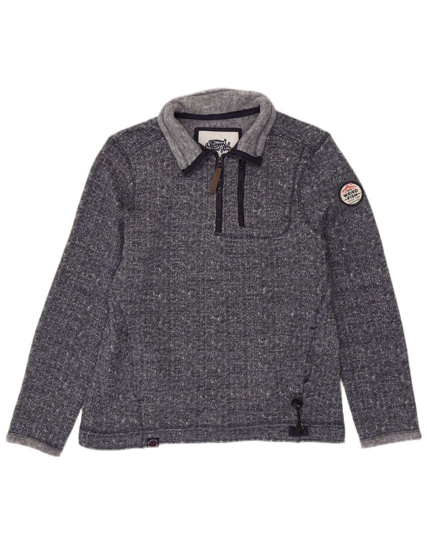WEIRD FISH Sweat-shirt à col zippé pour homme, petit motif à chevrons bleu marine