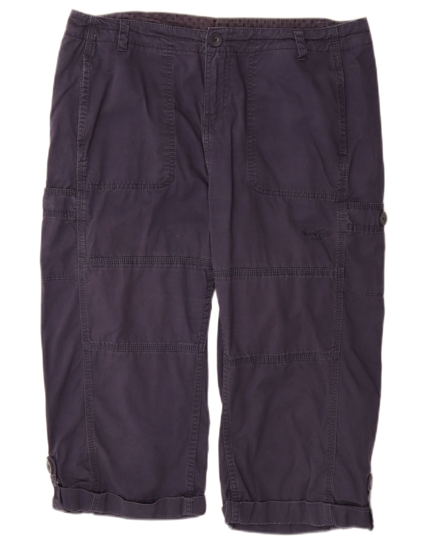 WEIRD FISH Pantalon Capri Femme UK 14 Large W34 Bleu Marine Coton