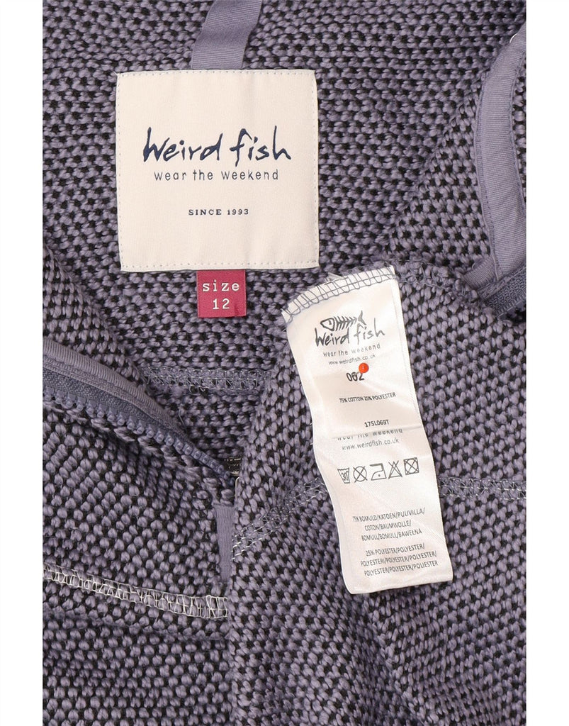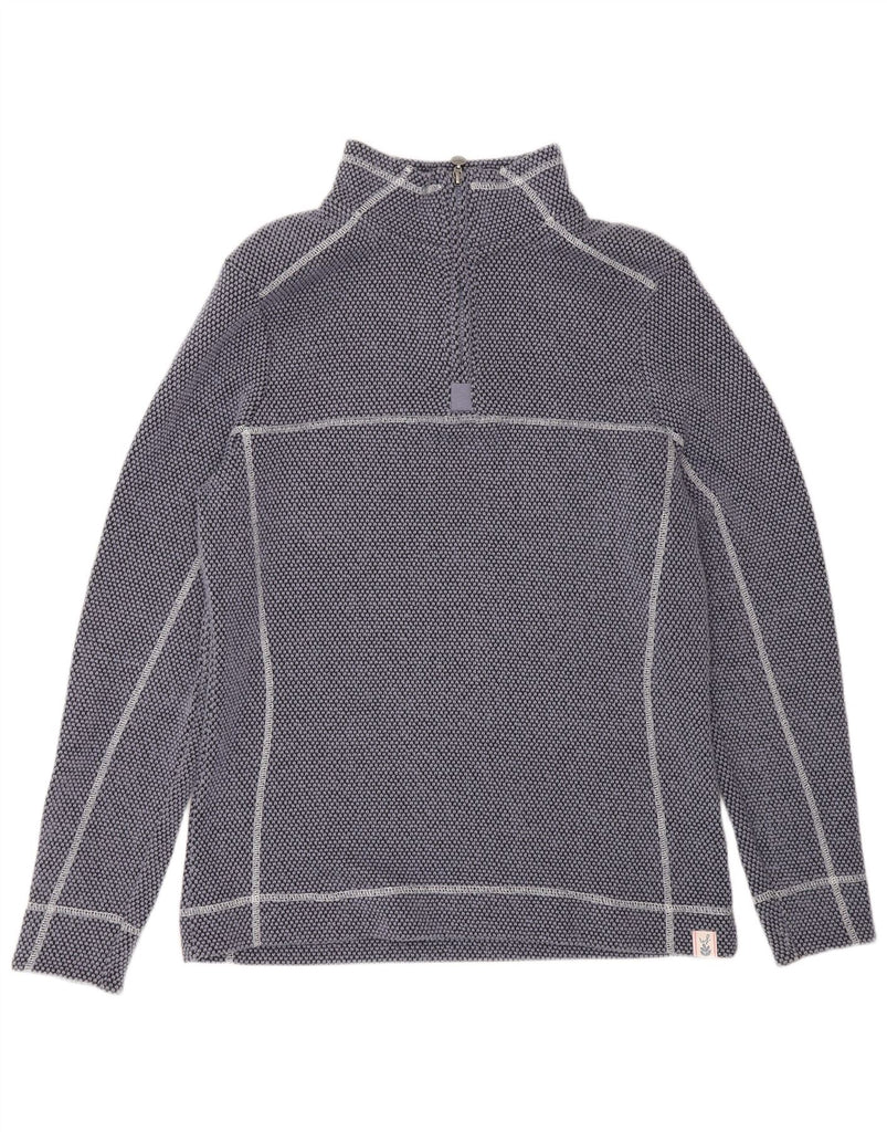 WEIRD FISH Womens Zip Neck Sweatshirt Jumper UK 12 Medium Navy Blue Cotton