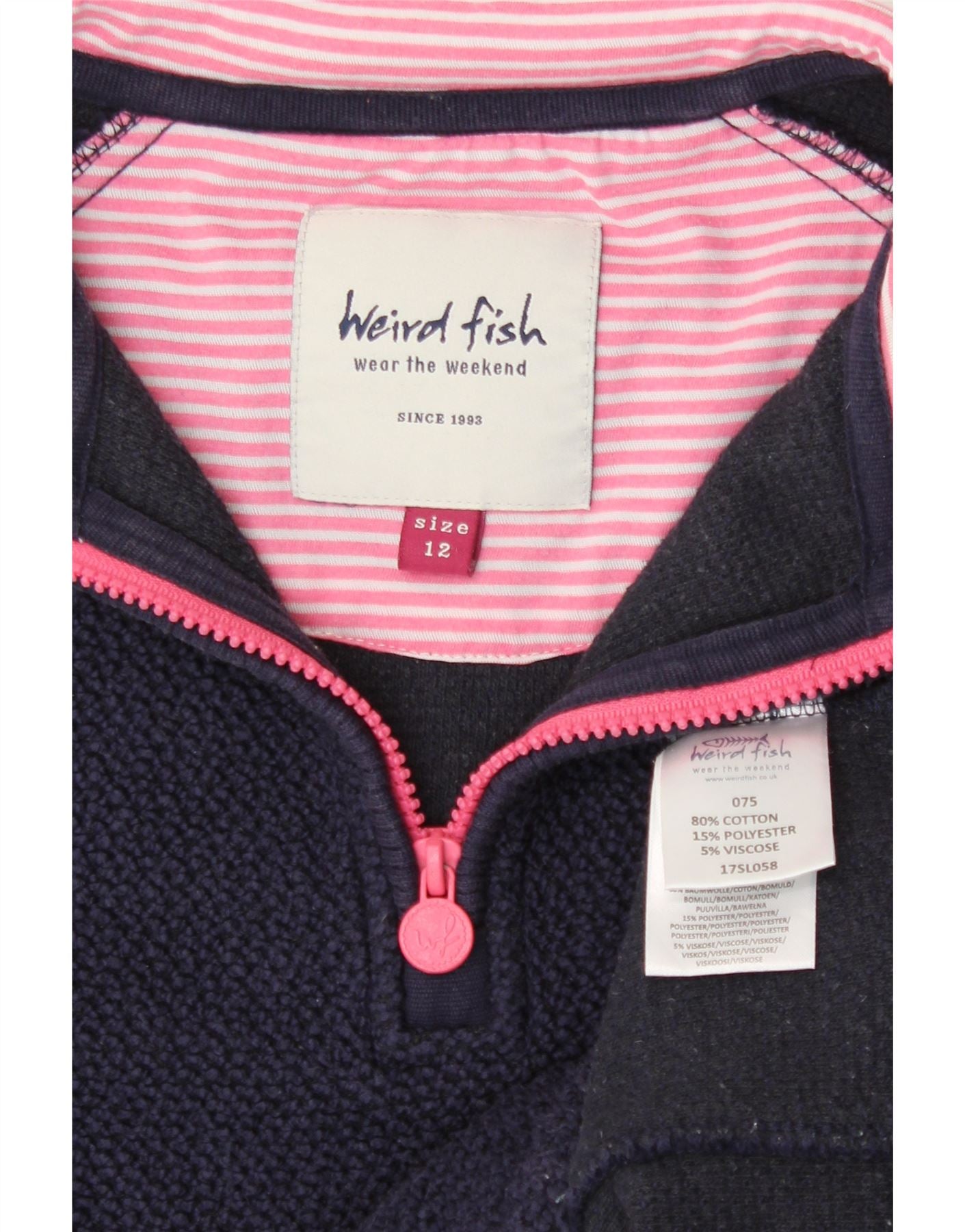 WEIRD FISH Sweat-shirt à col zippé pour femme UK 12 Bleu marine moyen Coton