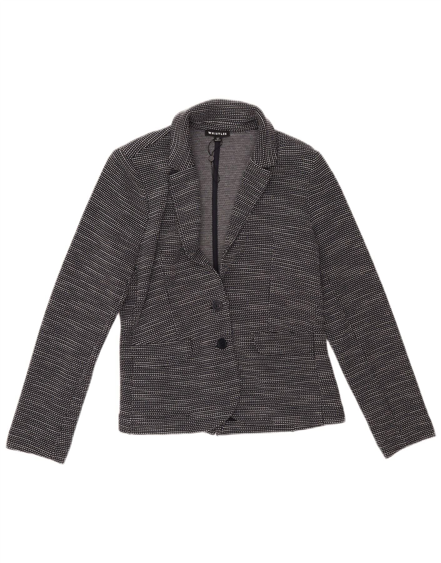 WHISTLES Veste blazer à 2 boutons pour femme UK 10 Petit coton rayé noir