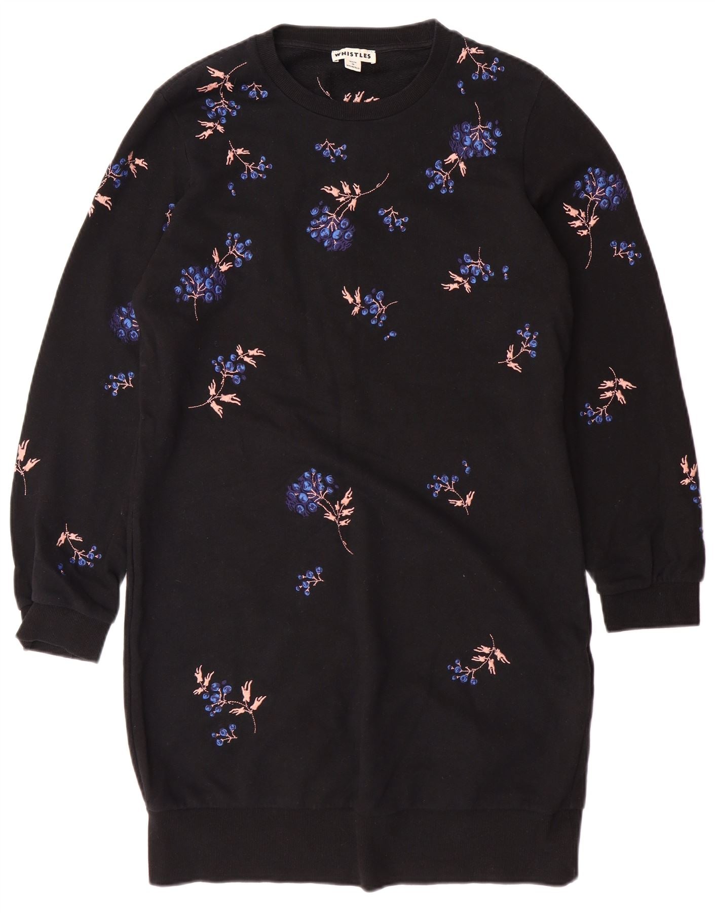 WHISTLES Robe pull sweat-shirt pour femme UK 10 Petit coton floral noir