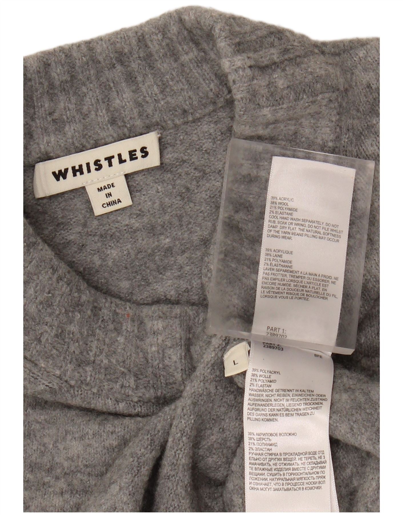 - AI Description: This Whistles women's roll neck jumper sweater is crafted from a soft grey blended fabric. It features a chic mock neck and long sleeves. The pullover design ensures a relaxed, loose fit for ultimate comfort. Made with acrylic, wool, polyamide, and elastane, the fabric offers a subtle stretch. This versatile piece provides warmth and effortless style.