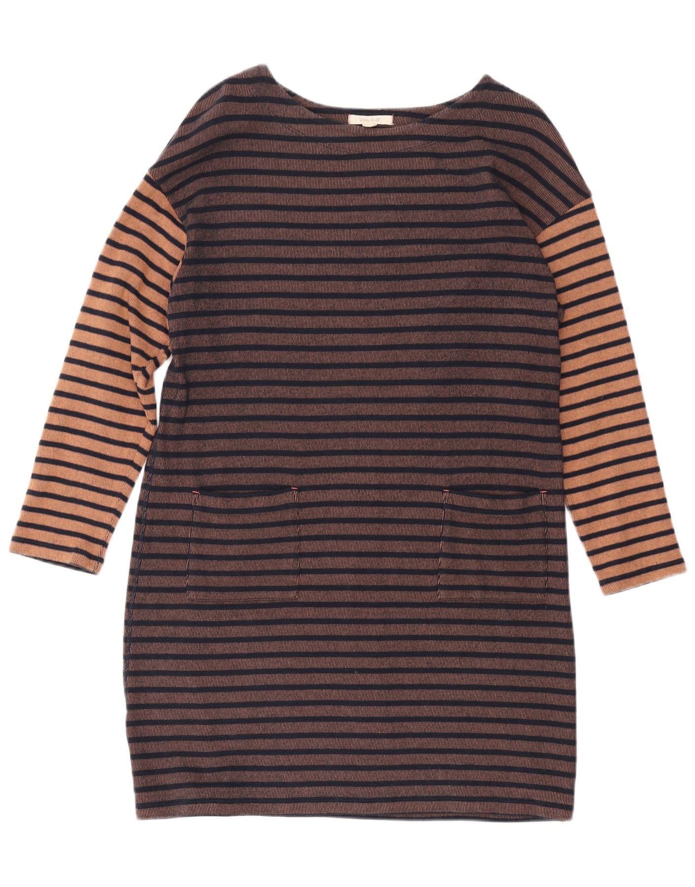 WHITE STUFF Robe fourreau à manches longues pour femme UK 14 Large Marron Rayé