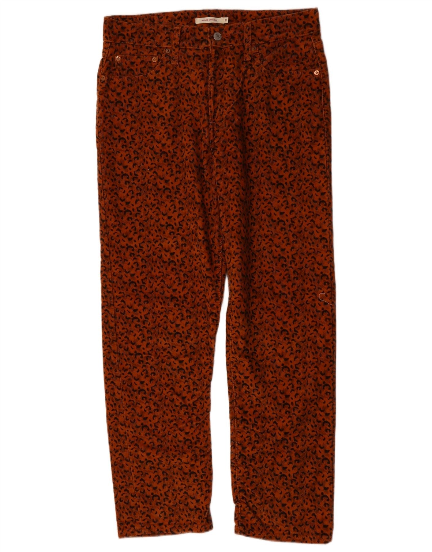- Description de l'IA : Ce pantalon en velours côtelé Levi's pour femme est confectionné dans un tissu en velours côtelé doux dans une riche teinte orange. Ils présentent un motif imprimé animal saisissant partout. Les accents cloutés ajoutent une touche de détail. Le pantalon offre une coupe régulière confortable avec une coupe droite sur les jambes. Une fermeture boutonnée sécurise la taille. Des poches pratiques complètent le design, alliant style et utilité.