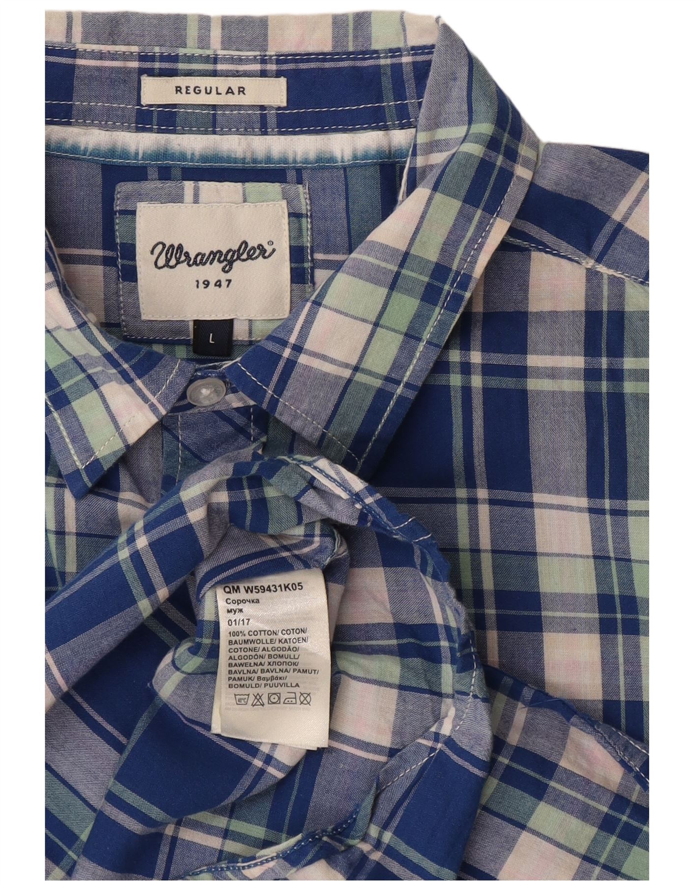 Wrangler Chemise à manches courtes pour homme Coupe classique en coton à carreaux bleus