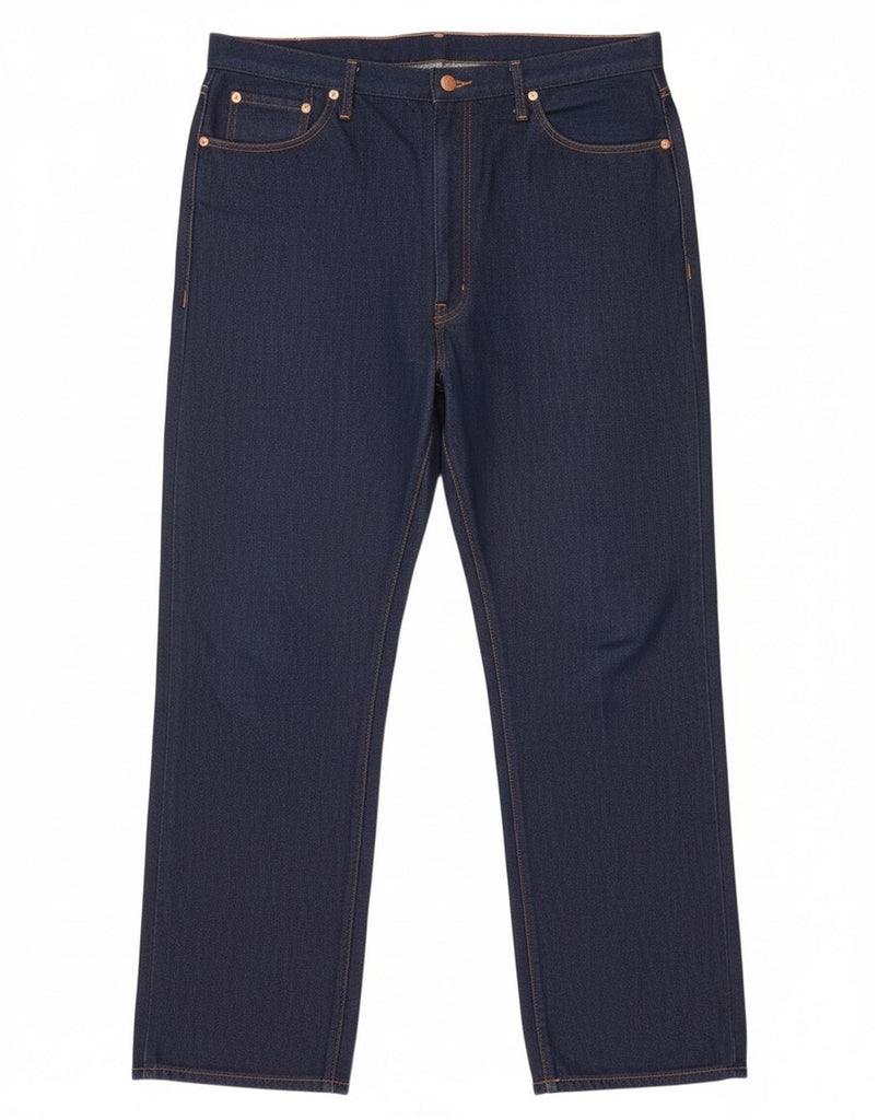 - AI Description: These Wrangler mens straight jeans are crafted from a durable blue cotton and polyester blend denim. The fabric offers a comfortable stretch for ease of movement. Featuring a classic straight leg cut, these jeans provide a timeless regular fit. A button closure and practical pockets enhance their traditional design. They are a versatile wardrobe staple for everyday wear.