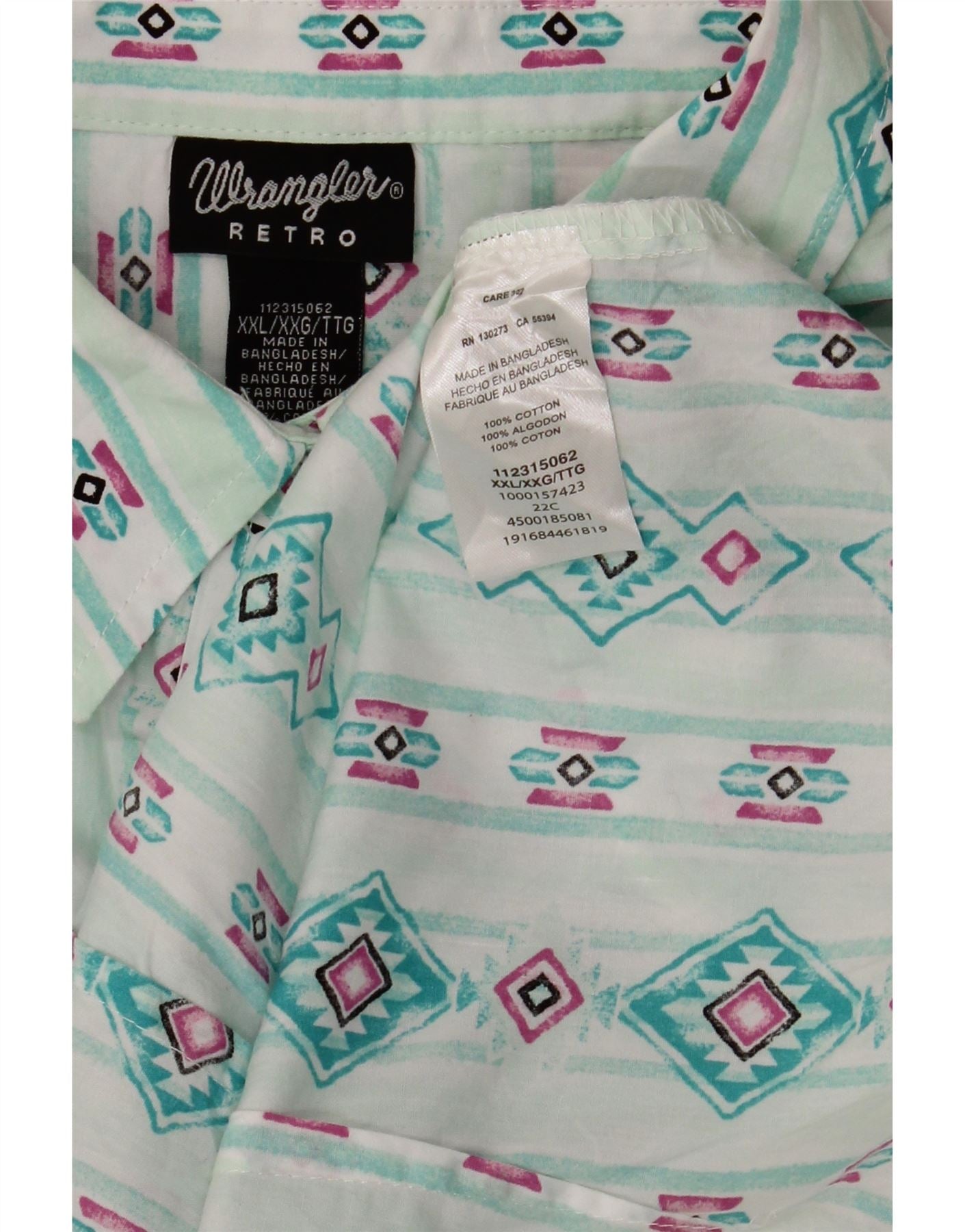 WRANGLER Chemise Rétro Femme UK 20 2XL Turquoise Géométrique Coton