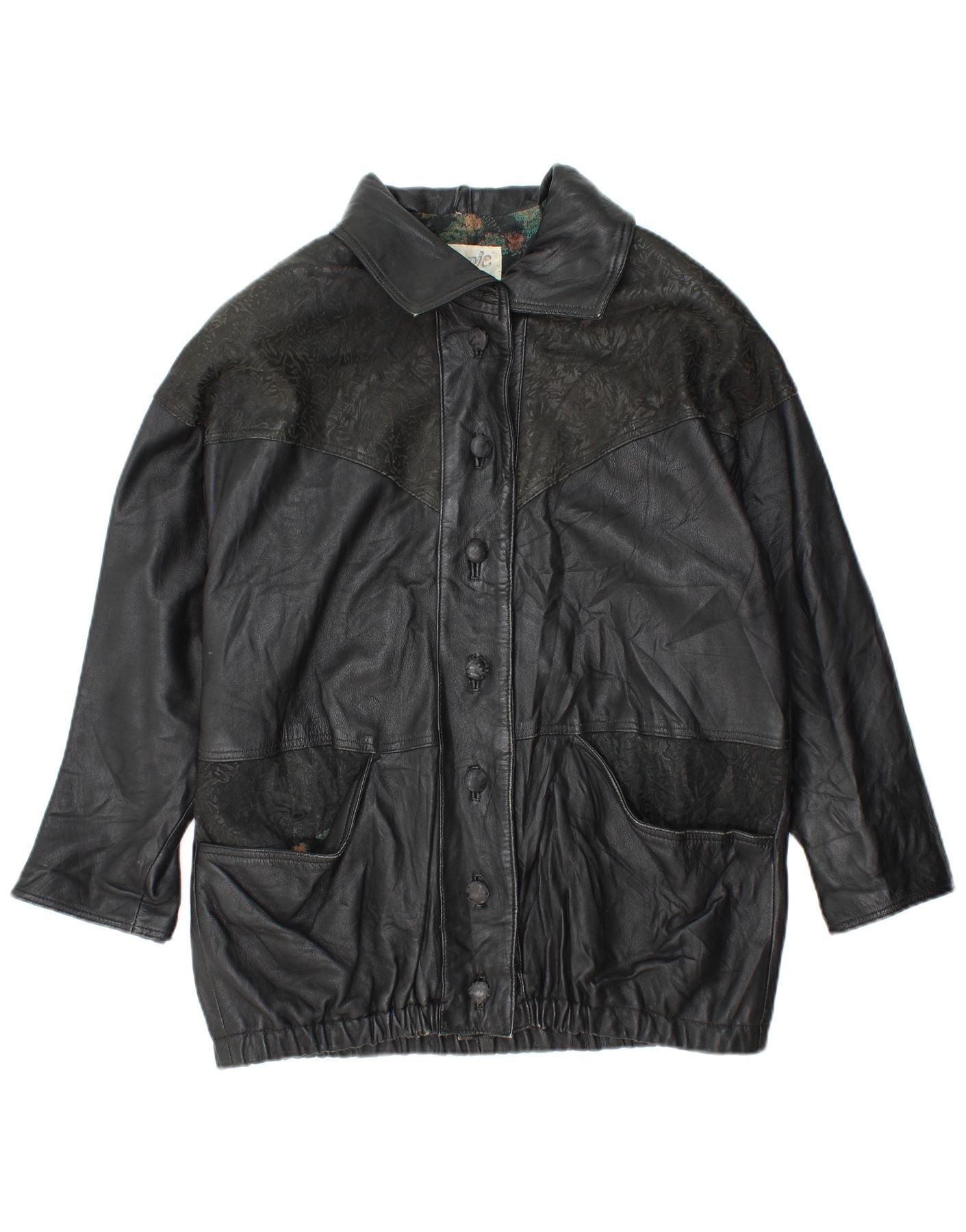 YUPPIE Veste en cuir surdimensionnée pour femme UK 18 XL Noir Floral