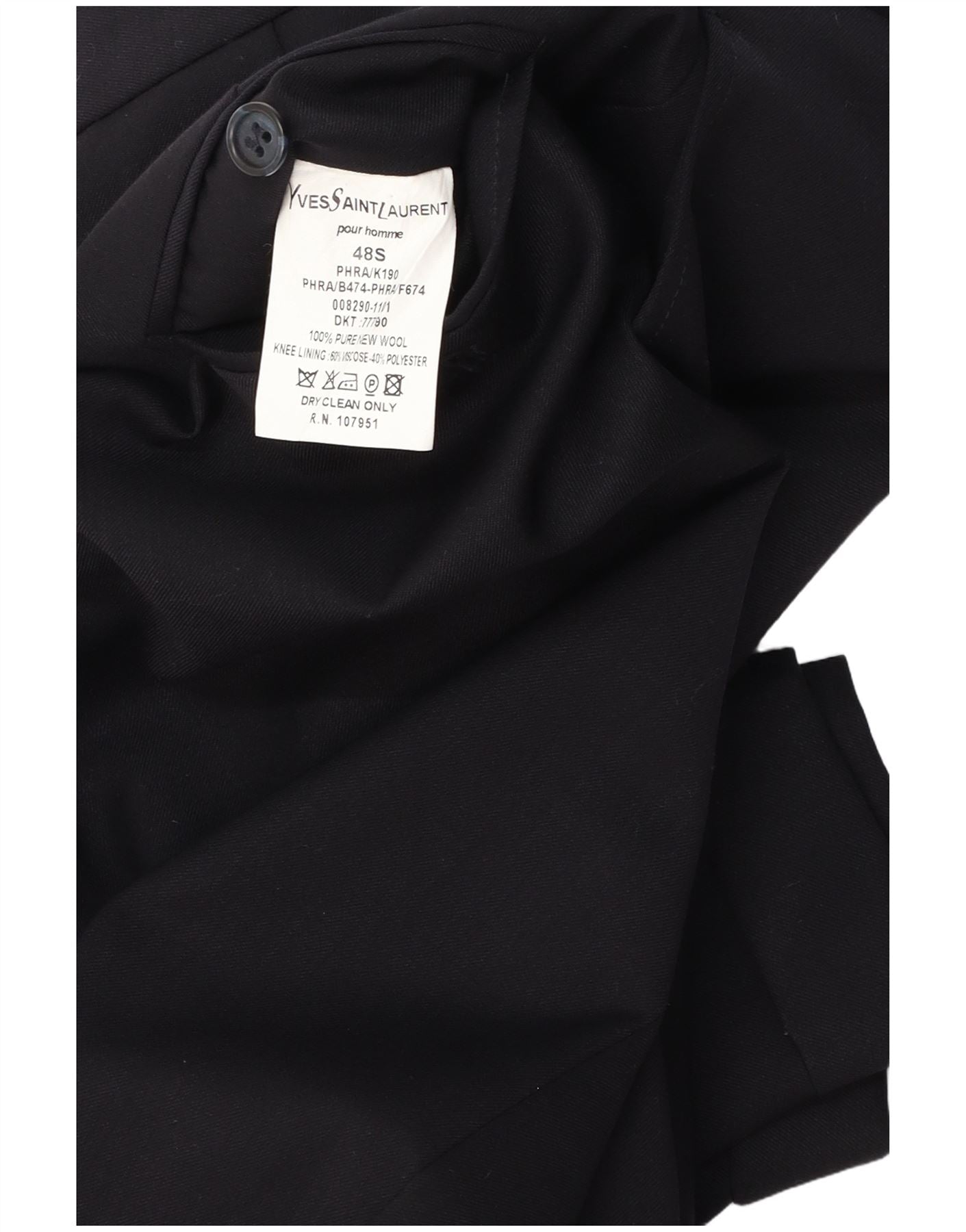YVES SAINT LAURENT Mens Suit Trousers IT 48 Medium W32 L27 Navy Blue