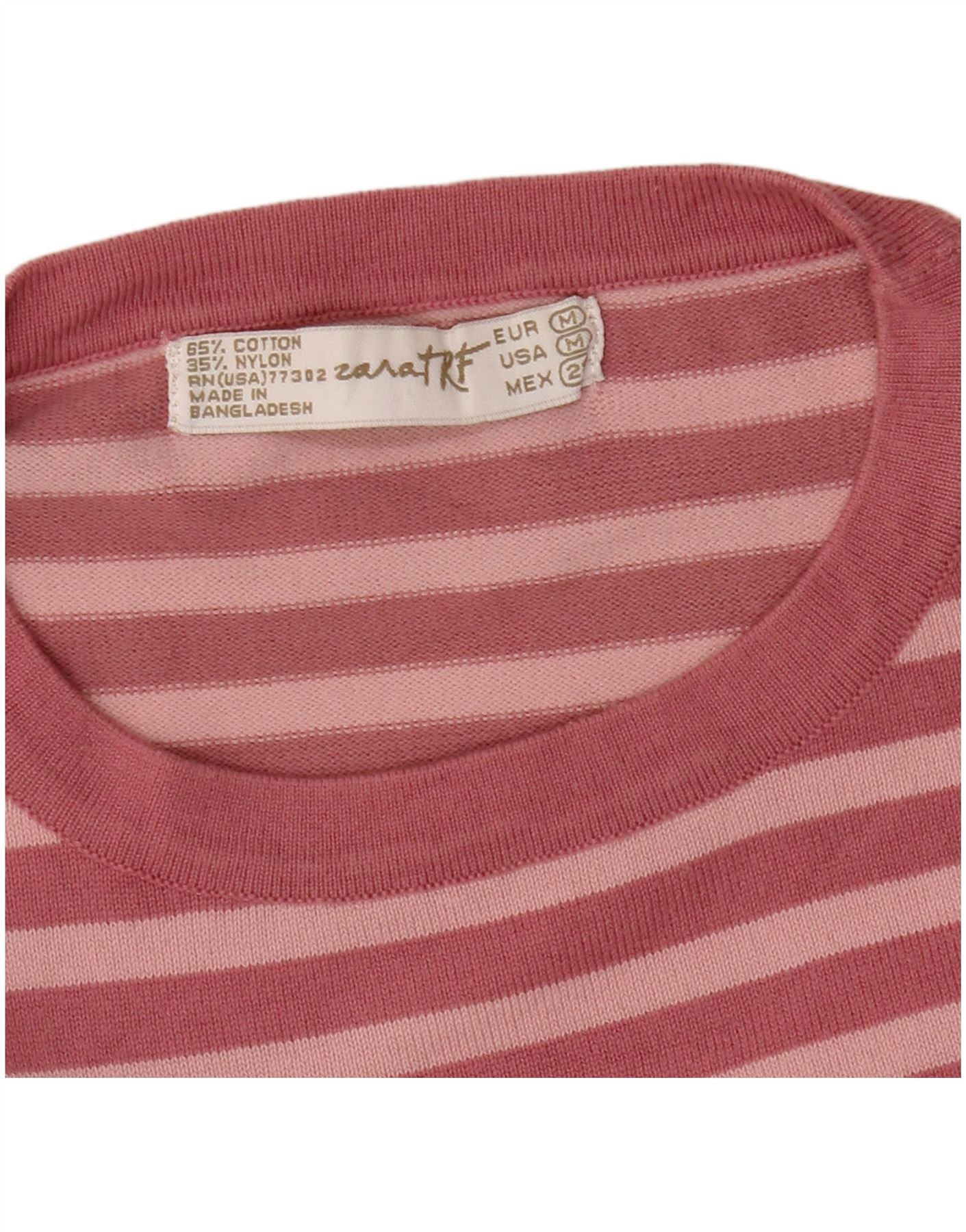 ZARA Filles Top Manches 3/4 11-12 ans Coton Rayé Rose Moyen