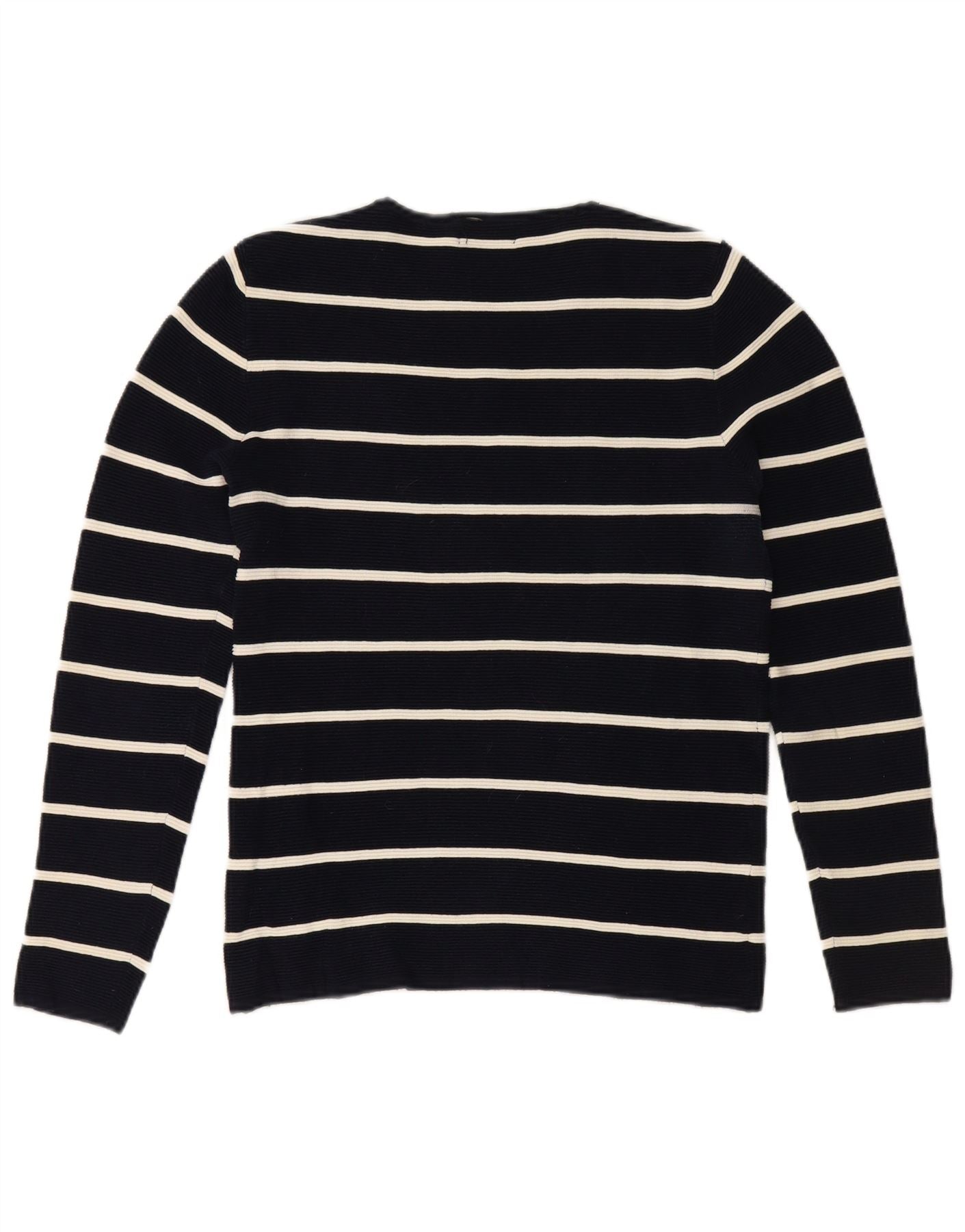 ZARA Pull à col rond pour homme en coton rayé bleu marine moyen