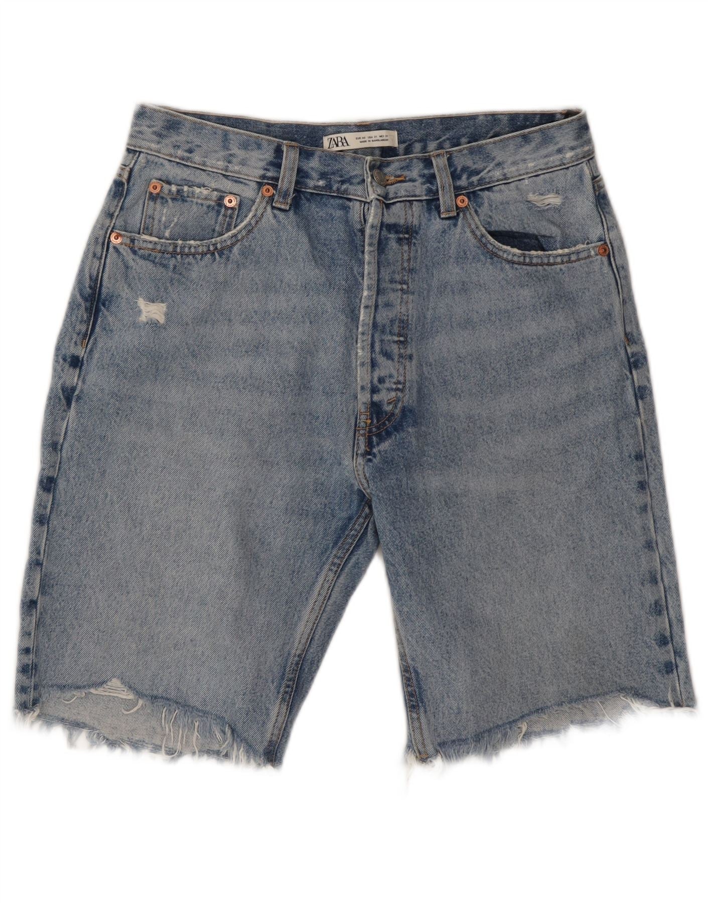 ZARA Short en jean vieilli W31 pour homme en coton bleu moyen