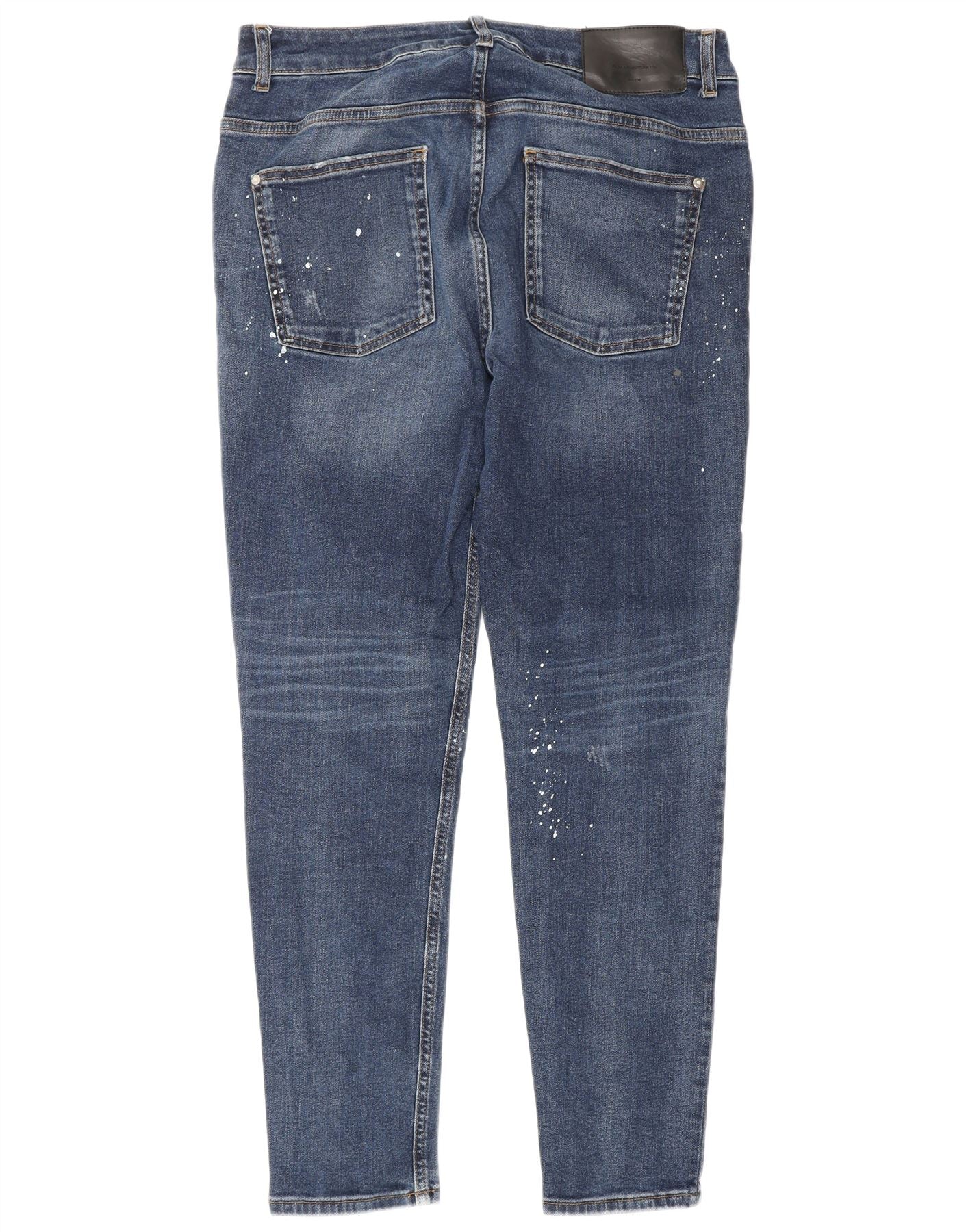 ZARA Jean skinny en détresse pour homme EU 46 XL W36 L30 Bleu à pois en coton