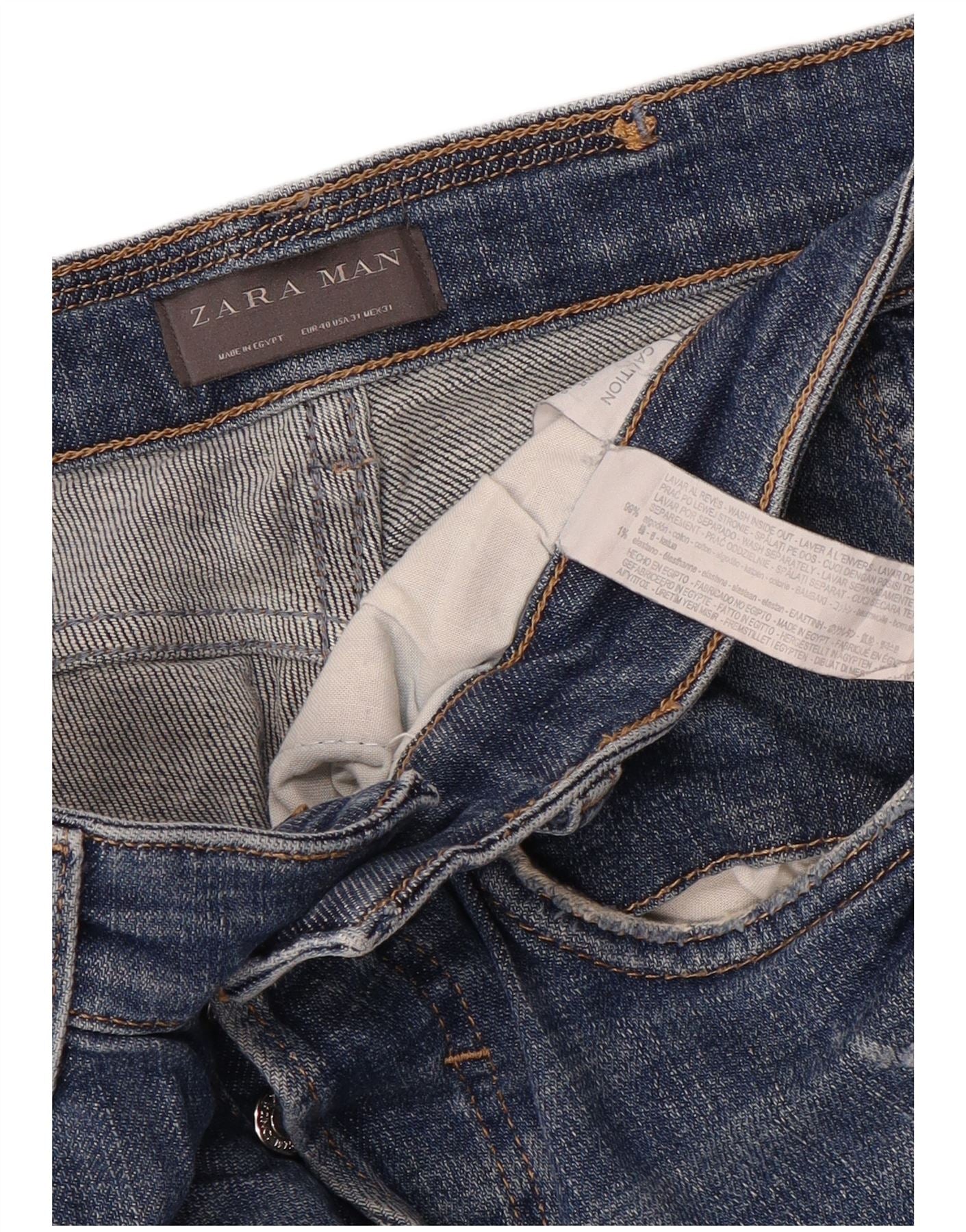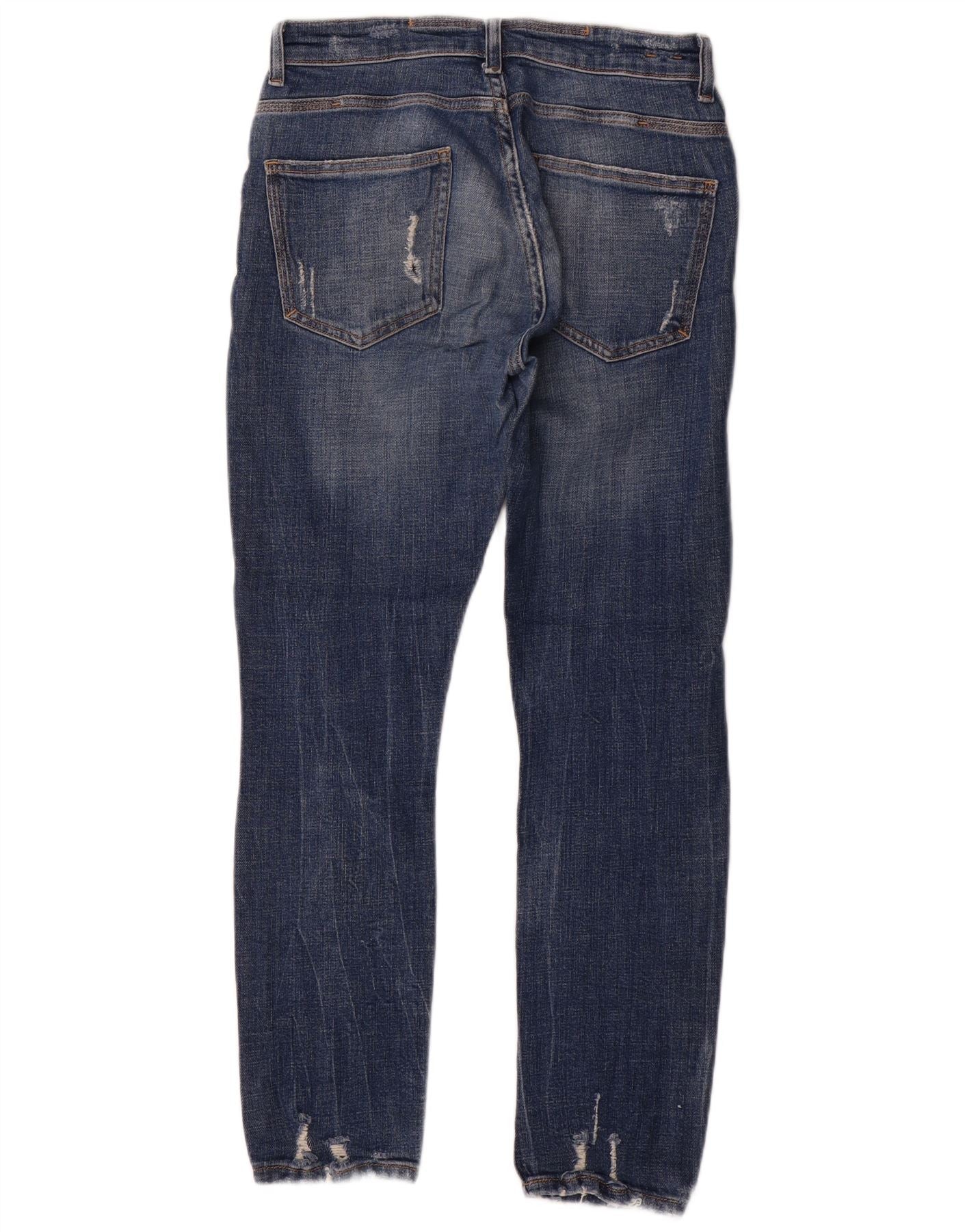 ZARA Jean slim en détresse pour homme EU 40 Medium W31 L30 Bleu Coton