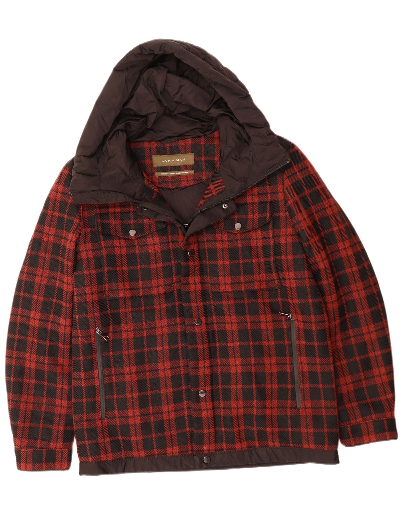 ZARA Veste bomber à capuche pour homme UK 40 Grand carreaux rouges Polyester