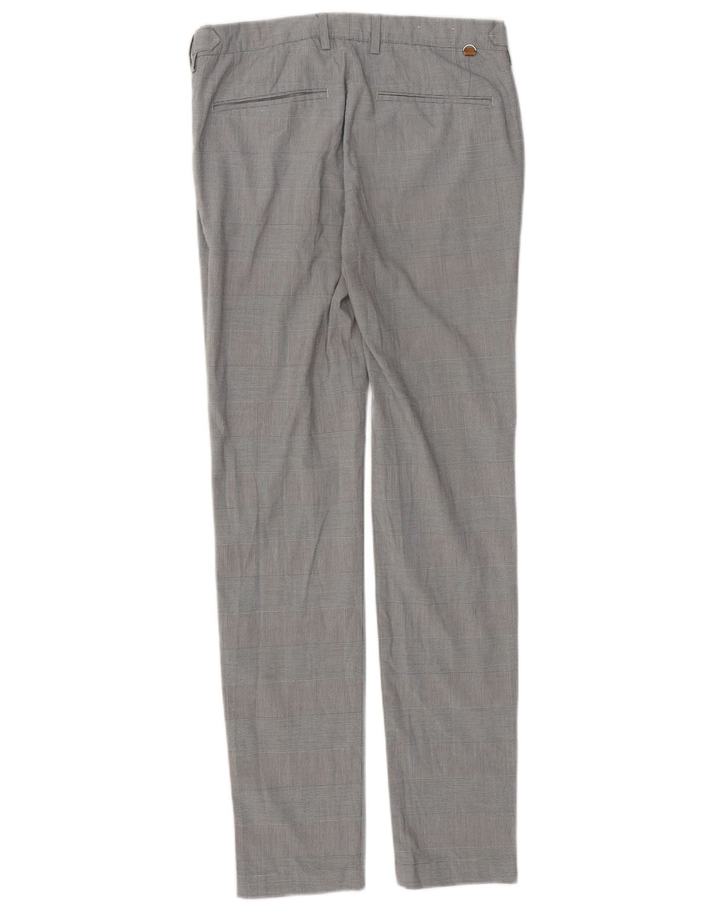 ZARA Pantalon Chino Slim Homme EU 38 Small W30 L31 Gris Pied-de-Poule