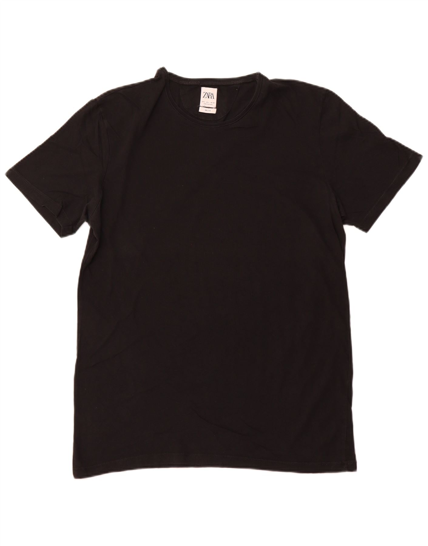 - Description de l'IA : Ce T-shirt pour homme Zara est confectionné dans un tissu jersey noir doux. Il présente un col rond classique et des manches courtes. Le design du pull offre une coupe régulière confortable. Son style simple et classique en fait un incontournable de votre garde-robe polyvalente. Ce t-shirt noir uni est parfait à porter au quotidien, offrant à la fois confort et attrait intemporel.