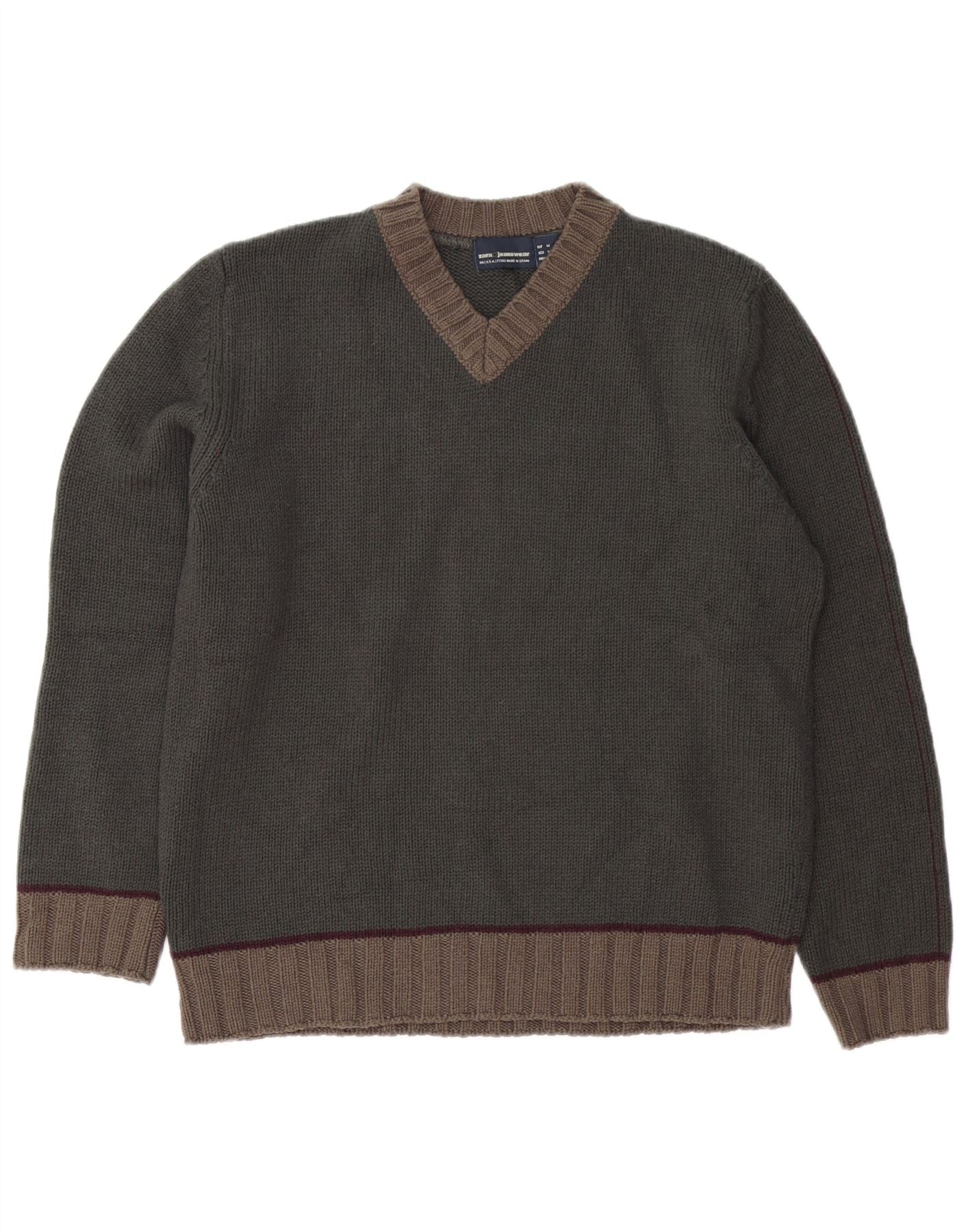 ZARA Pull col V Homme Kaki Moyen Acrylique Colorblock