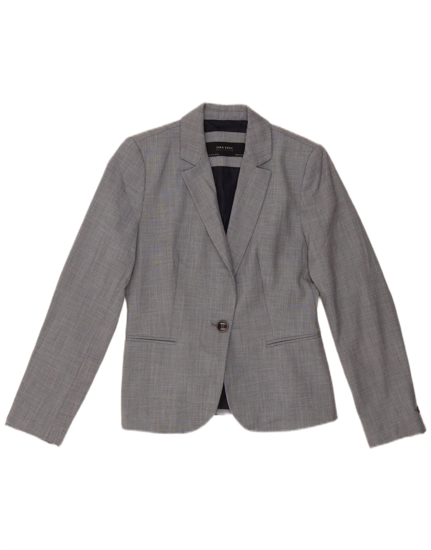 ZARA Veste Blazer 1 Bouton Femme EU 36 XS Gris Chevron Polyester