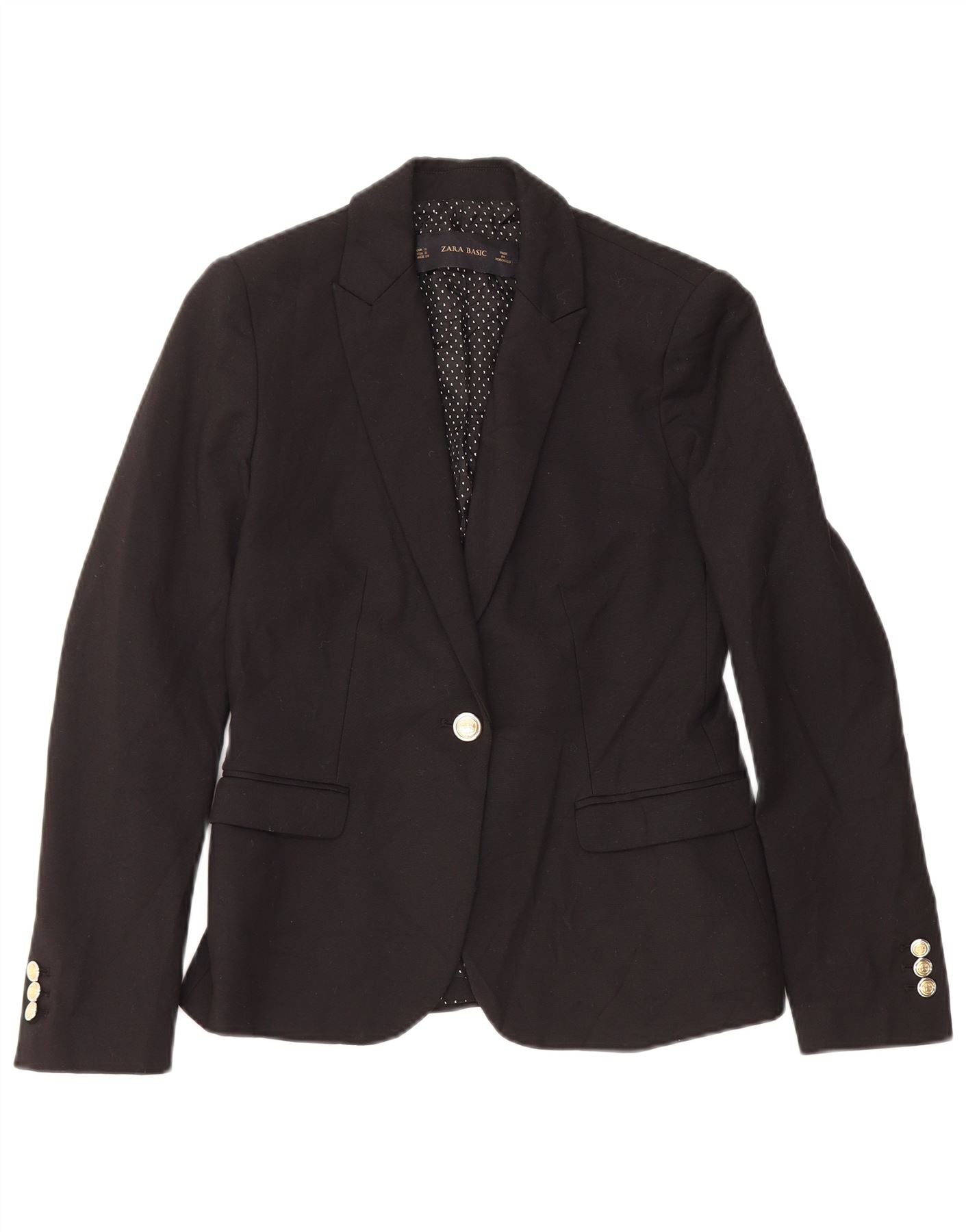 Zara Veste Blazer 1 Bouton Femme UK 10 Petit Coton Noir