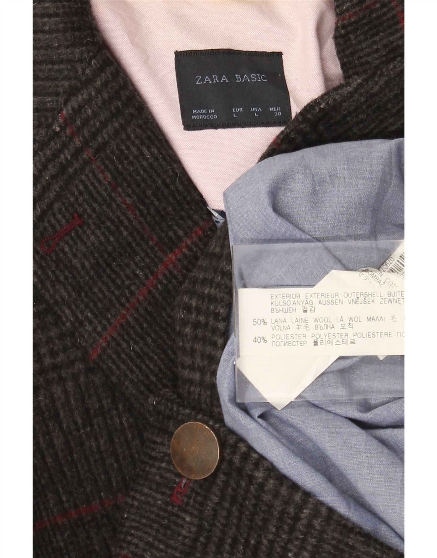 Zara Womens 1 Button Blazer Jacket UK 14 Large Gris Carreaux Laine