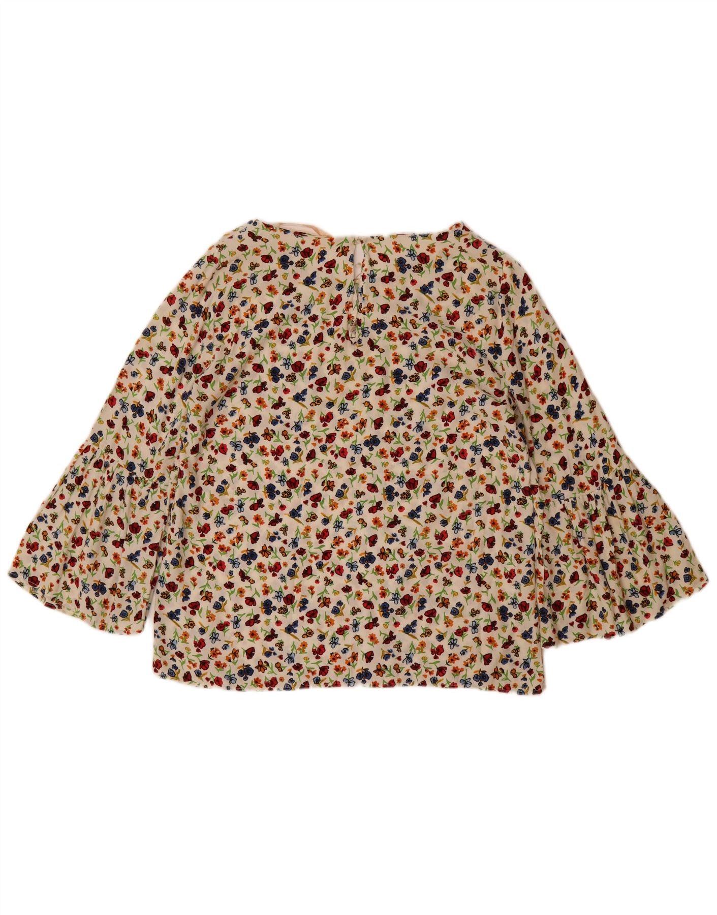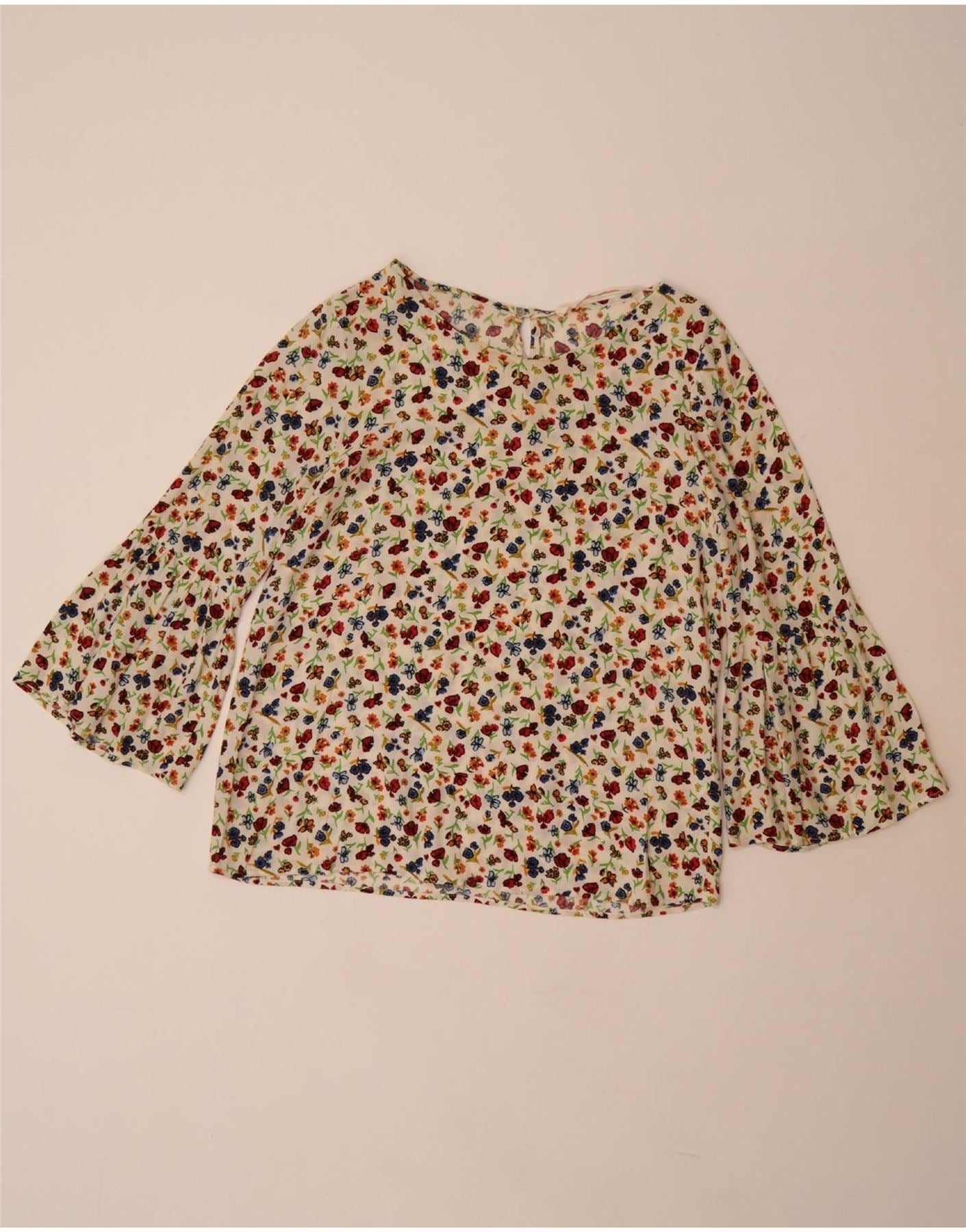 ZARA Chemisier à manches 3/4 pour femme UK 10 Petit blanc cassé en viscose florale