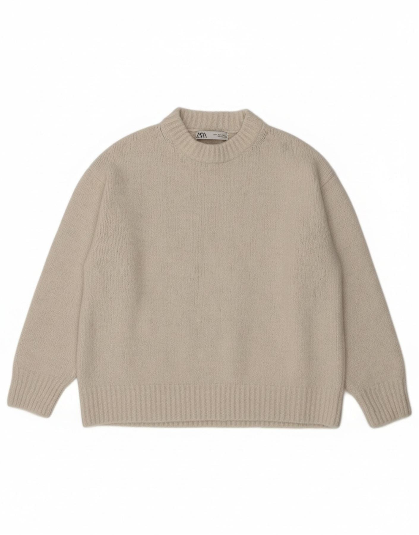 Zara Pull surdimensionné à manches 3/4 et col rond pour femme UK 10 Small Blanc