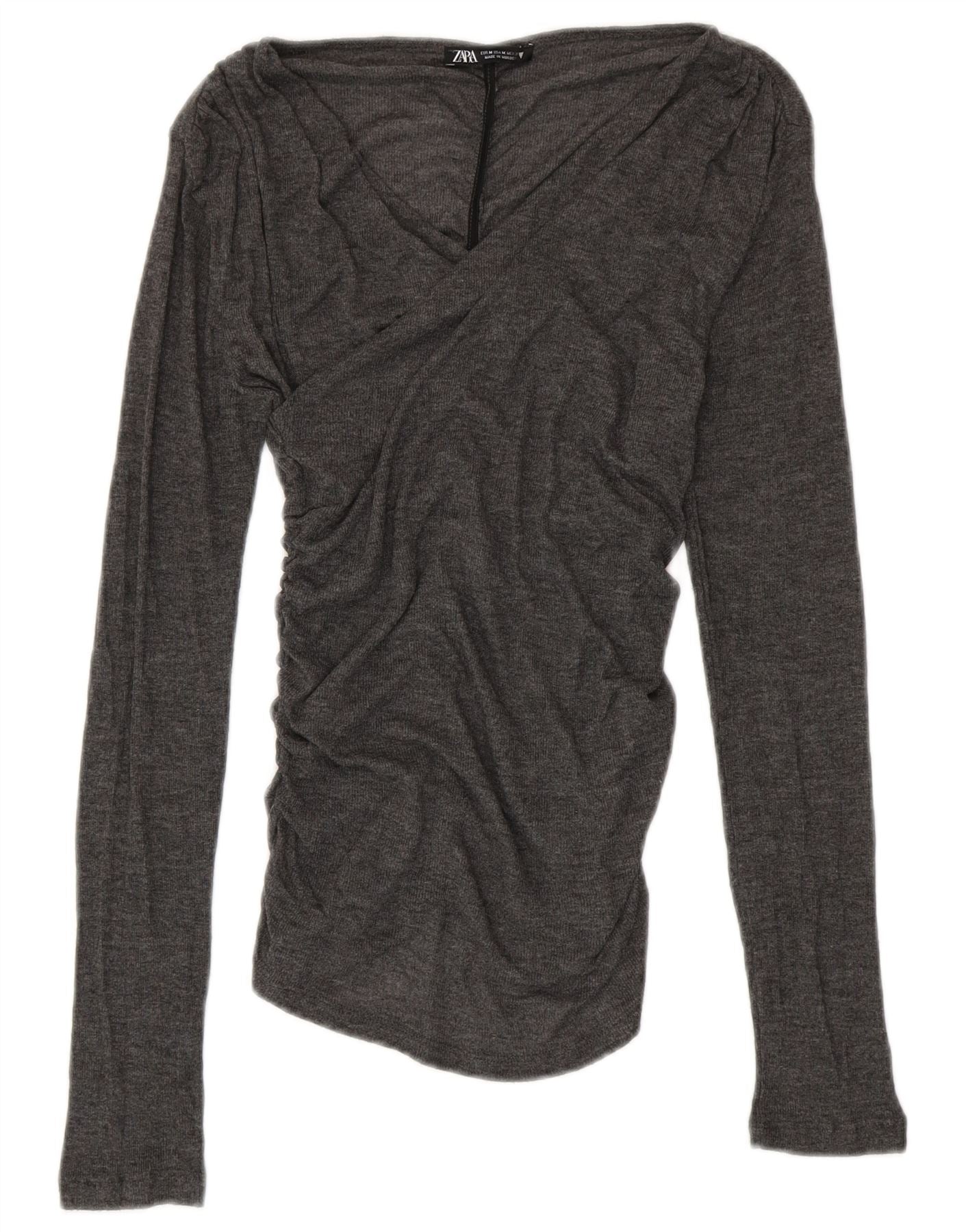 ZARA Femme Chemisier Top UK 12 Gris Moyen Polyester